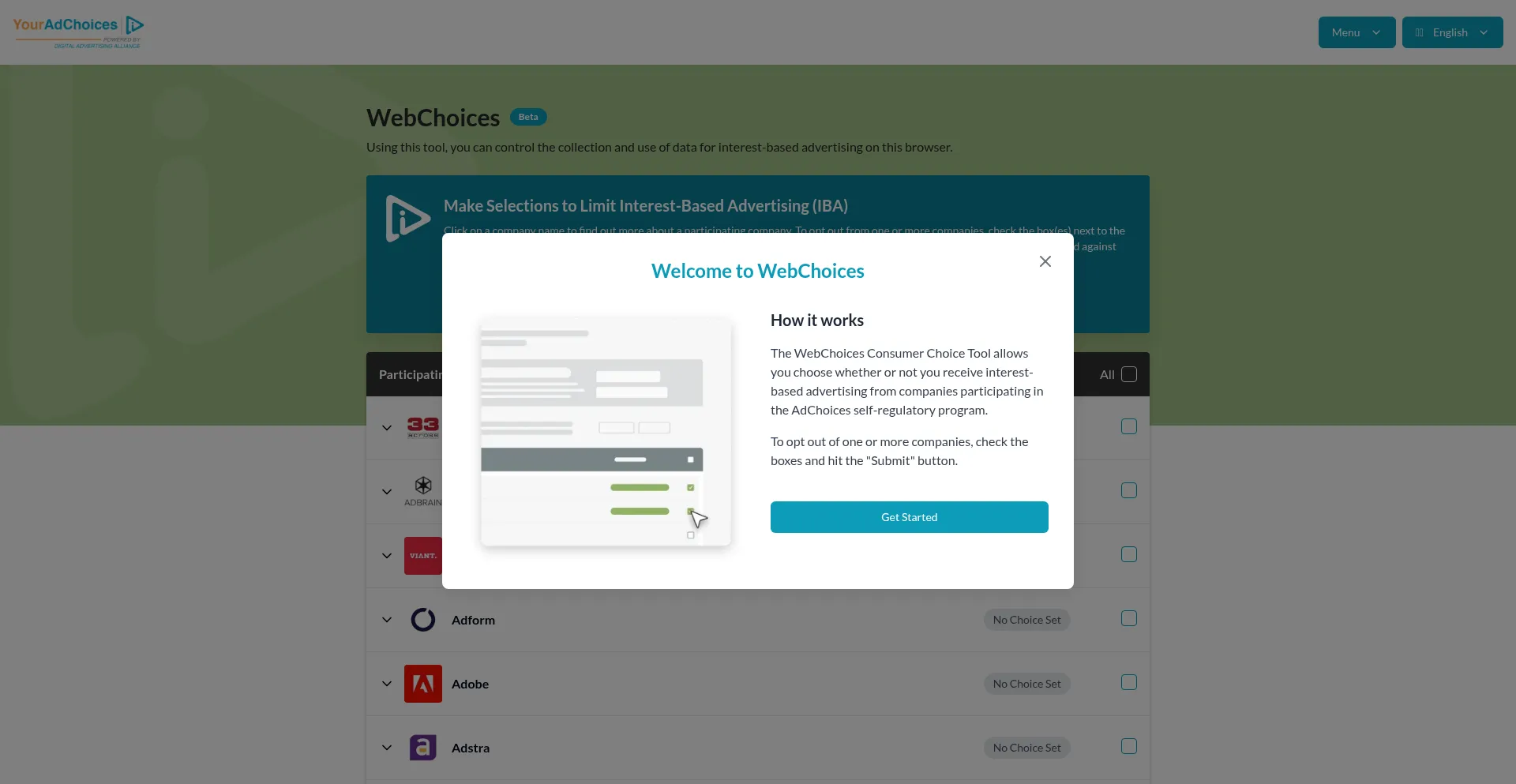Optout.aboutads Pegadas digitais