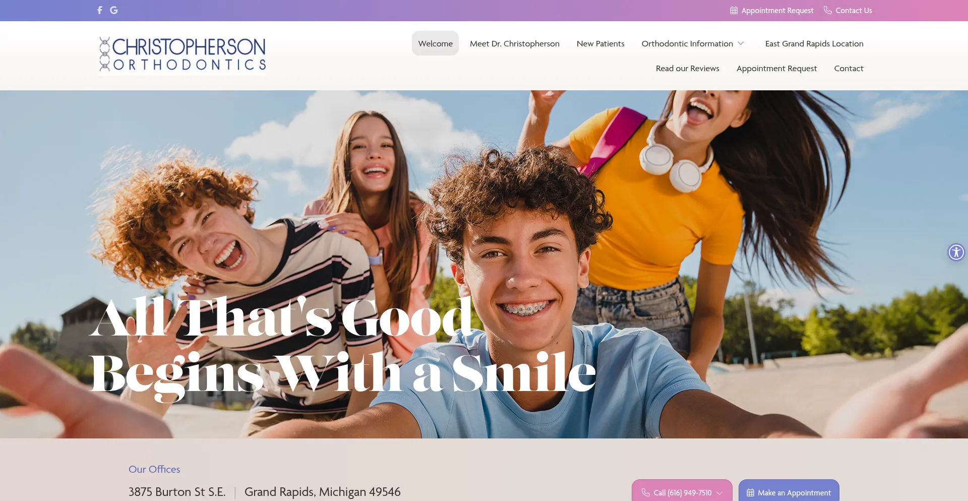 Welcome to our Welcome page. Contact Christopherson Orthodontics today at (616) 949-7510 or visit our office servicing Grand Rapids, Michigan
