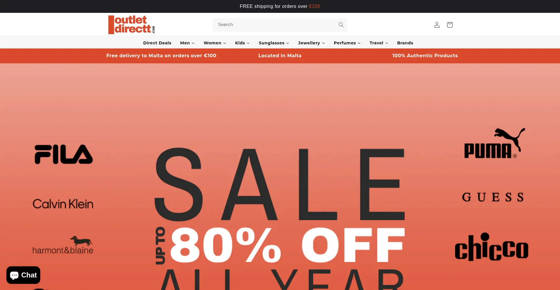 Sale prices up to 80% off RRP on brands including Calvin Klein, Tommy Hilfiger, Champion, Laura Biagiotti, U.S. Polo Assn, Guess, Chicco, FILA and more. Located in Malta.