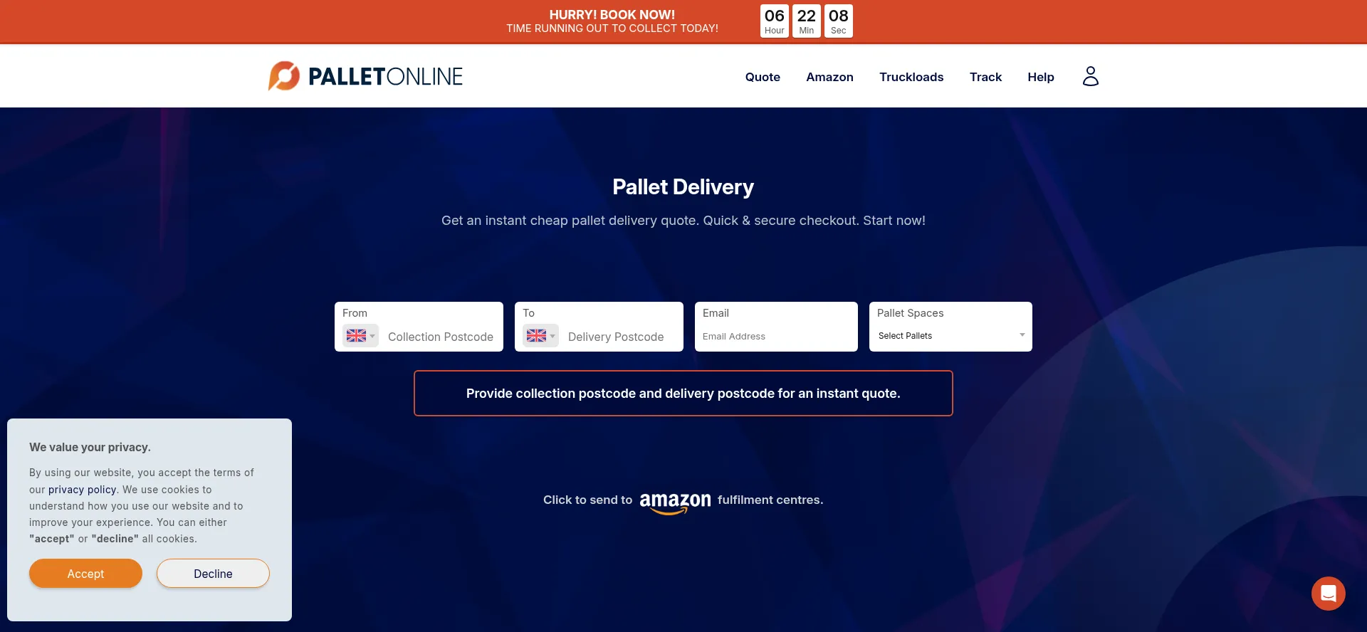 Send pallets with the most reliable pallet delivery service in the UK. Get an instant quote and book quick with our easy online booking system.