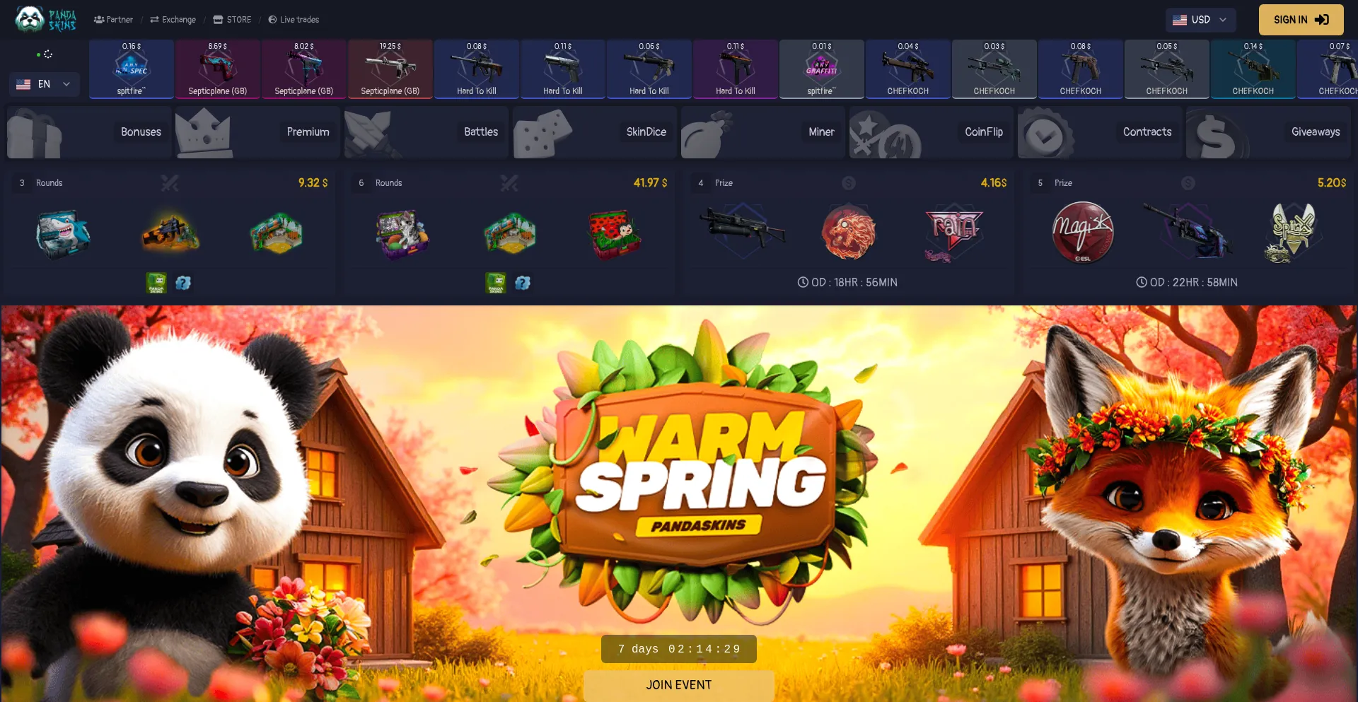 buy cheap CS:GO skins on the Panda Skins website. Skins for CS:GO from 5 eur. Skins of knives, weapons, for characters.