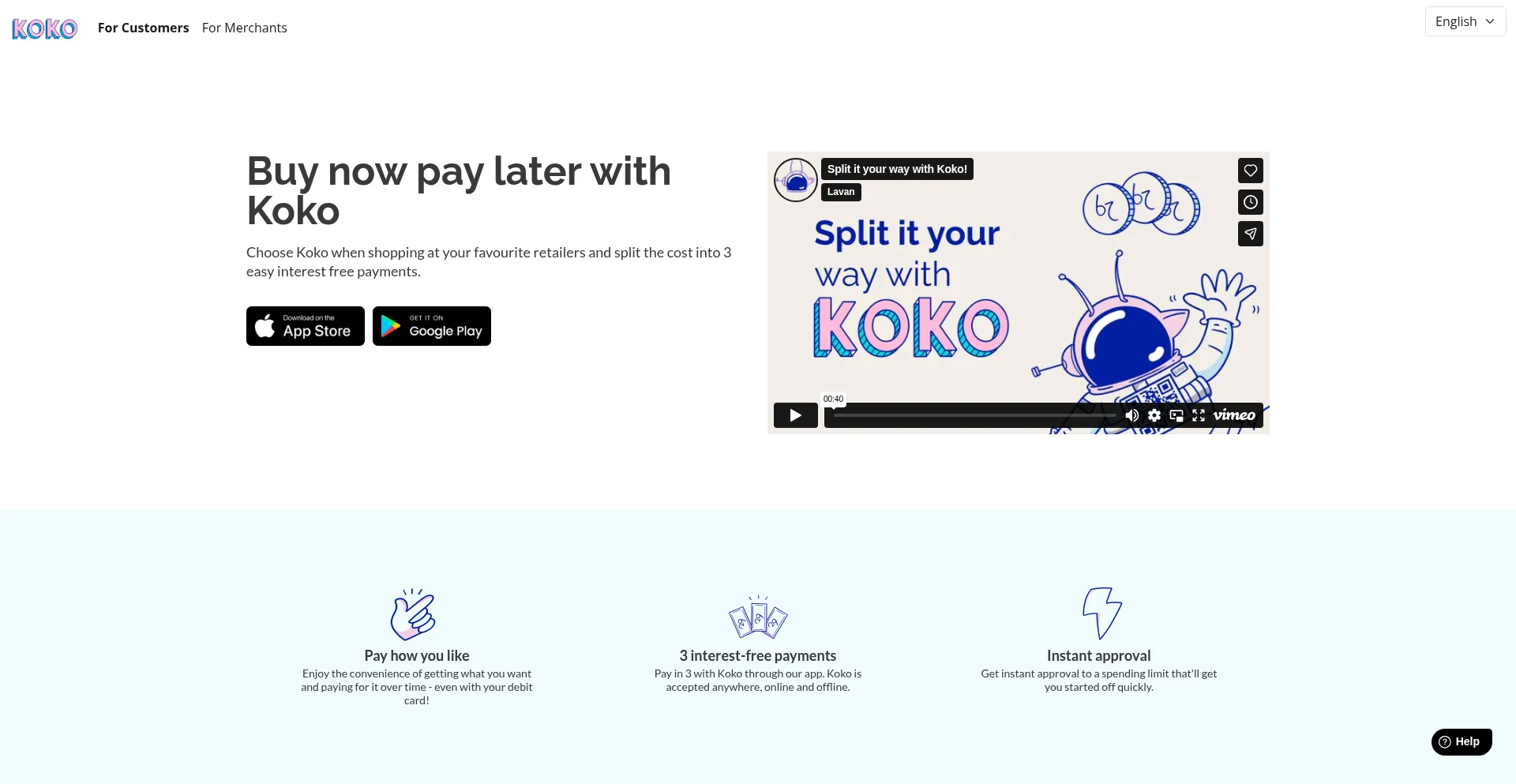 Buy what you need today with your debit or credit card and pay later in 3 installments. No interest. Available at all of your favorite online and offline stores with the Koko app.