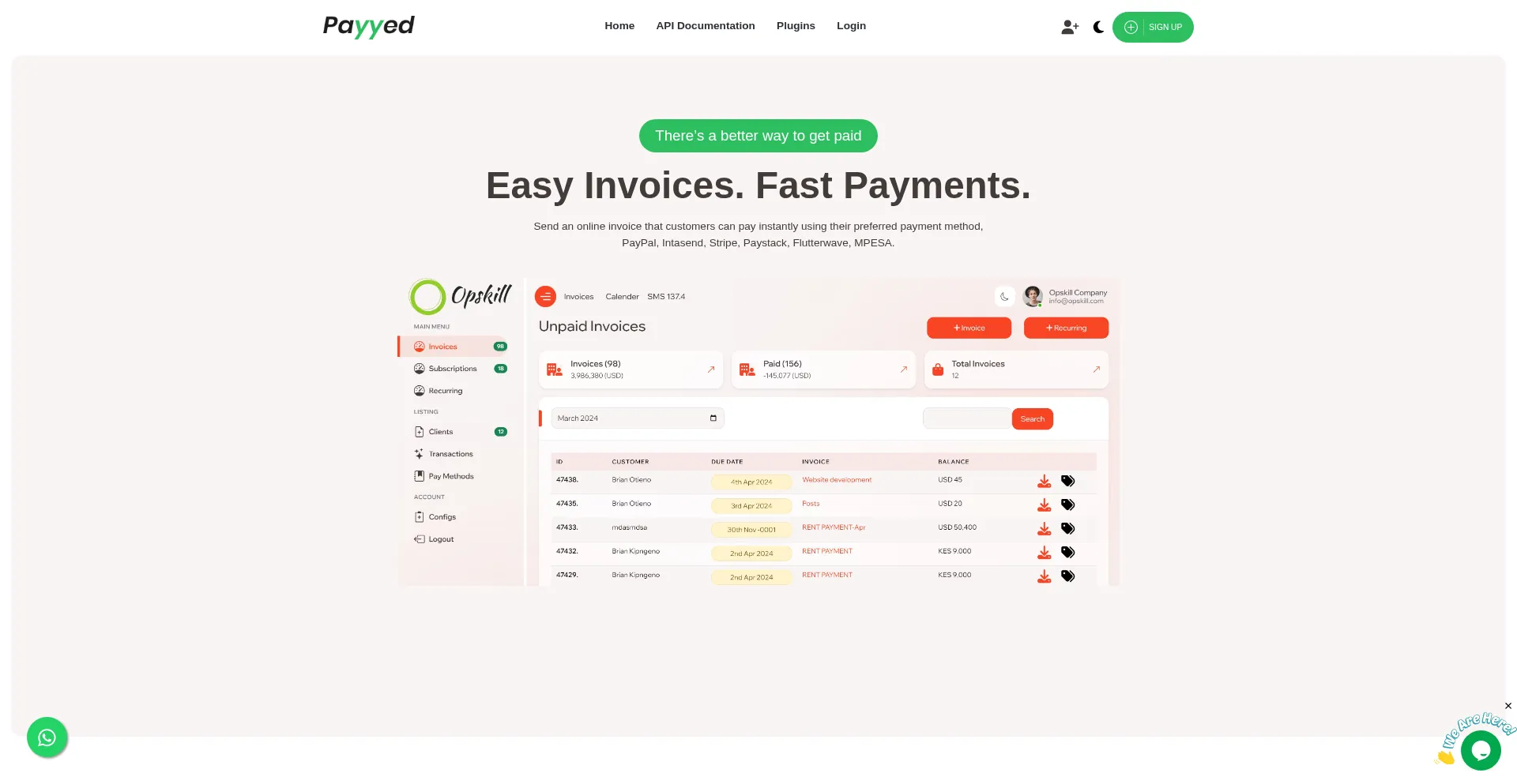 Send an online invoice that customers can pay instantly using their preferred payment method, PayPal, Intasend, Stripe, Paystack, Flutterwave, MPESA.