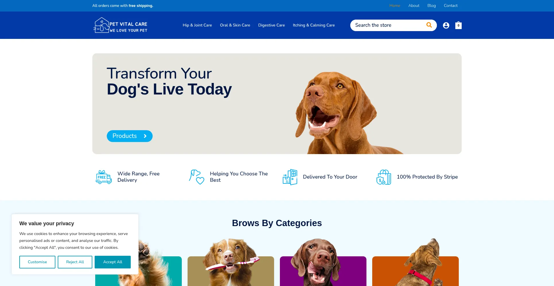 Discover premium pet supplements designed for Hip & Joint, Itching & Calming, and Digestive Care. Shop now for healthy, happy pets in the UK!
