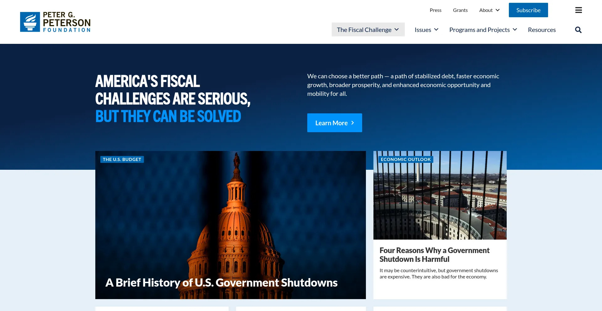 America's fiscal challenges are serious, but they can be solved. We work to build support for solutions to put America on a sustainable fiscal path.