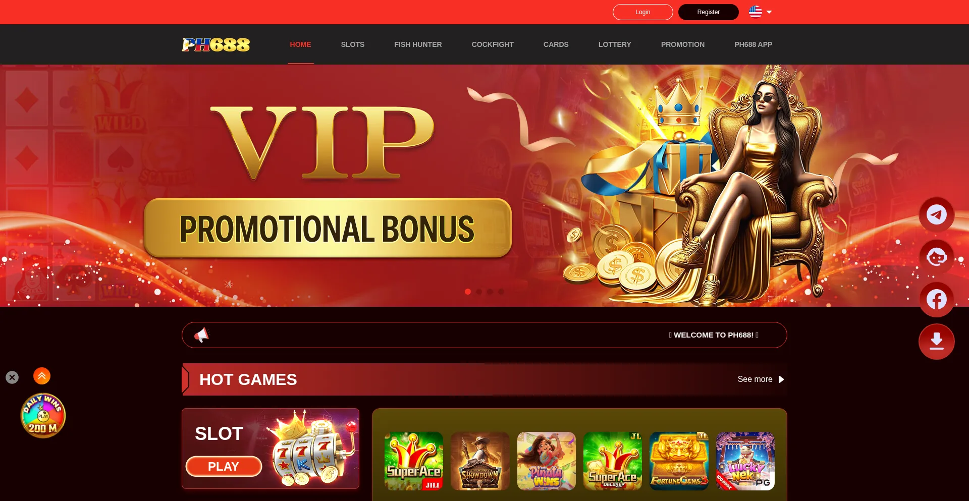 PH688 is committed to creating a professional, safe and exciting entertainment platform for players. Rich bonus benefits, fast recharge and withdrawal, enjoy a variety of game e...