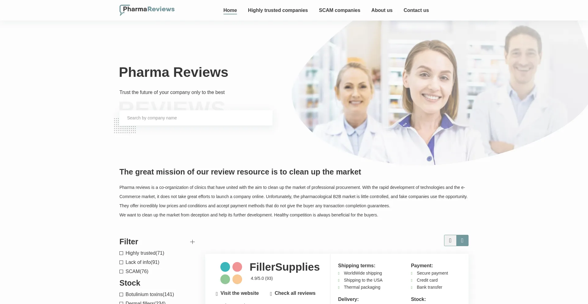 Find TOP Pharmaceutical industry suppliers. Rating of ✔ High trusted companies and ✖ Scammers. Your experience matters. All Pharma company reviews!