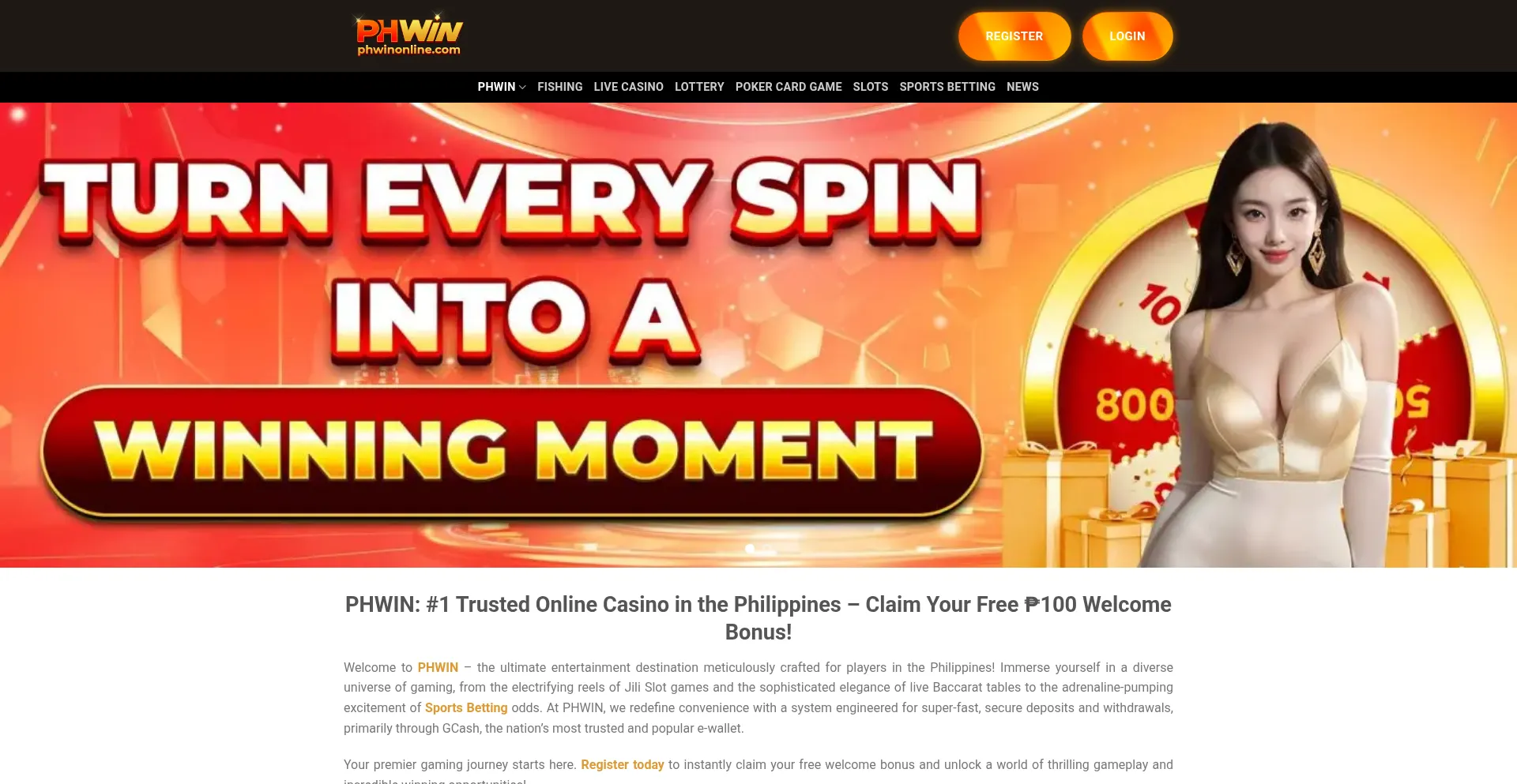 Join PHWIN, the #1 trusted & PAGCOR licensed online casino in the Philippines. Play 3000+ slots, live casino & sports. Fast GCash deposits & withdrawals. Get ₱100 free bonus!