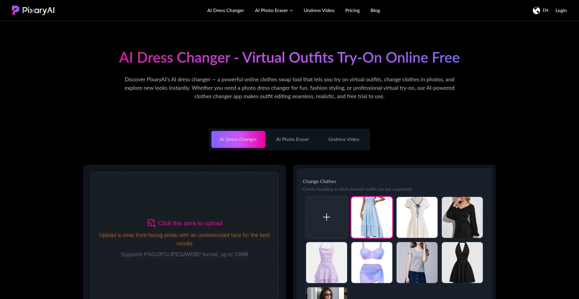AI Dress Changer Online Free, Virtual Clothes Try On | PixaryAI