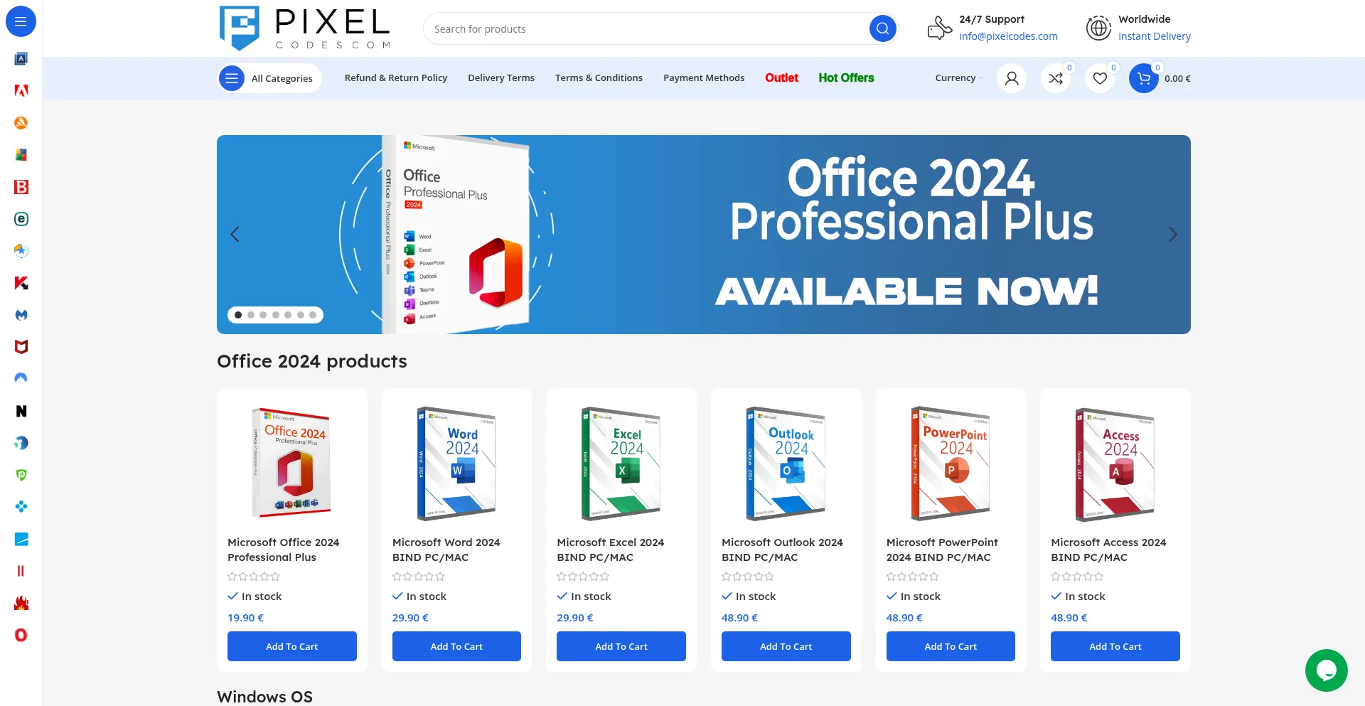 Office 2024 products -75% Add to compare Quick view Add to wishlist Microsoft Office 2024 Professional Plus (Download Link) Rated 0 out of 5 In stock 79.95 € Original price wa...