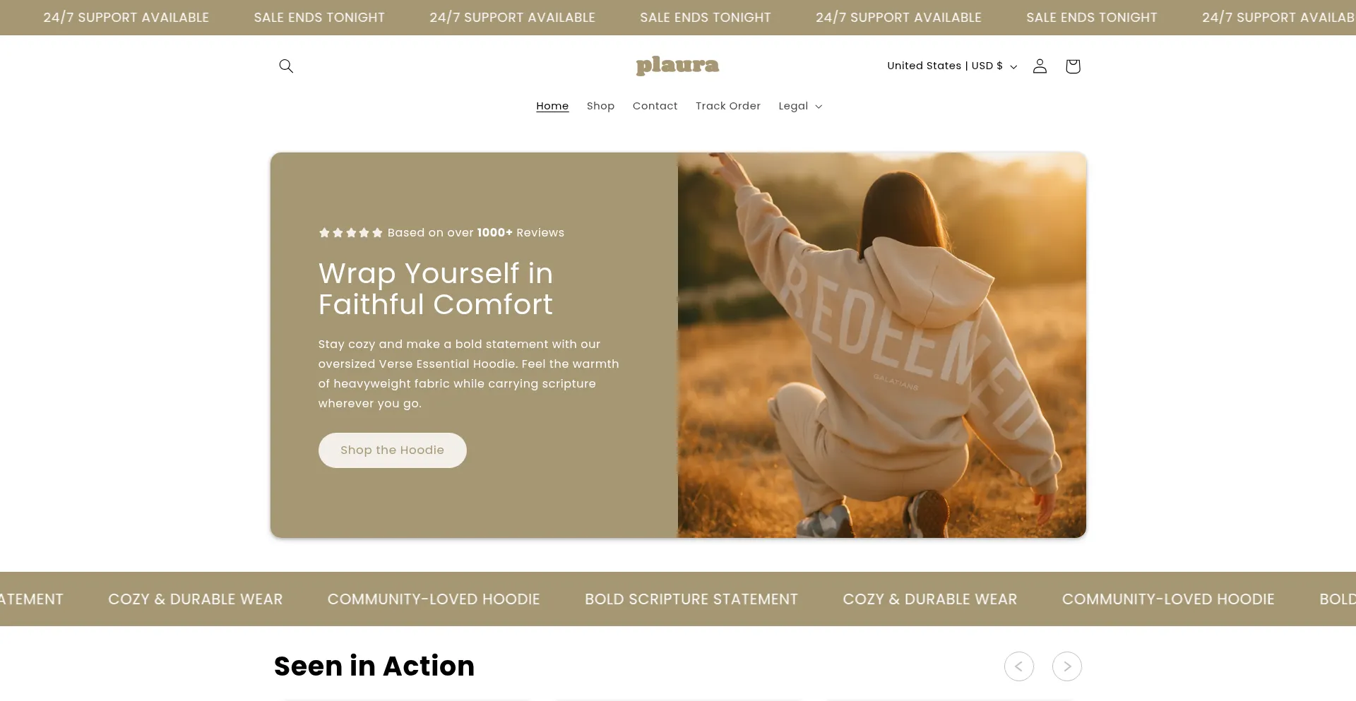 Shopping, Reliable Payment Method, Deals, Uses Free eCommerce Engine, Shopify Platform, Facebook Integration, Young Domain