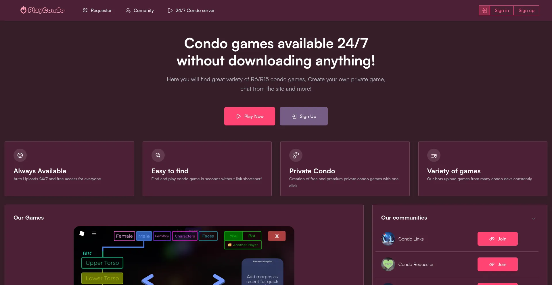 Condo games available 24/7, 2P servers, private requestor and more!