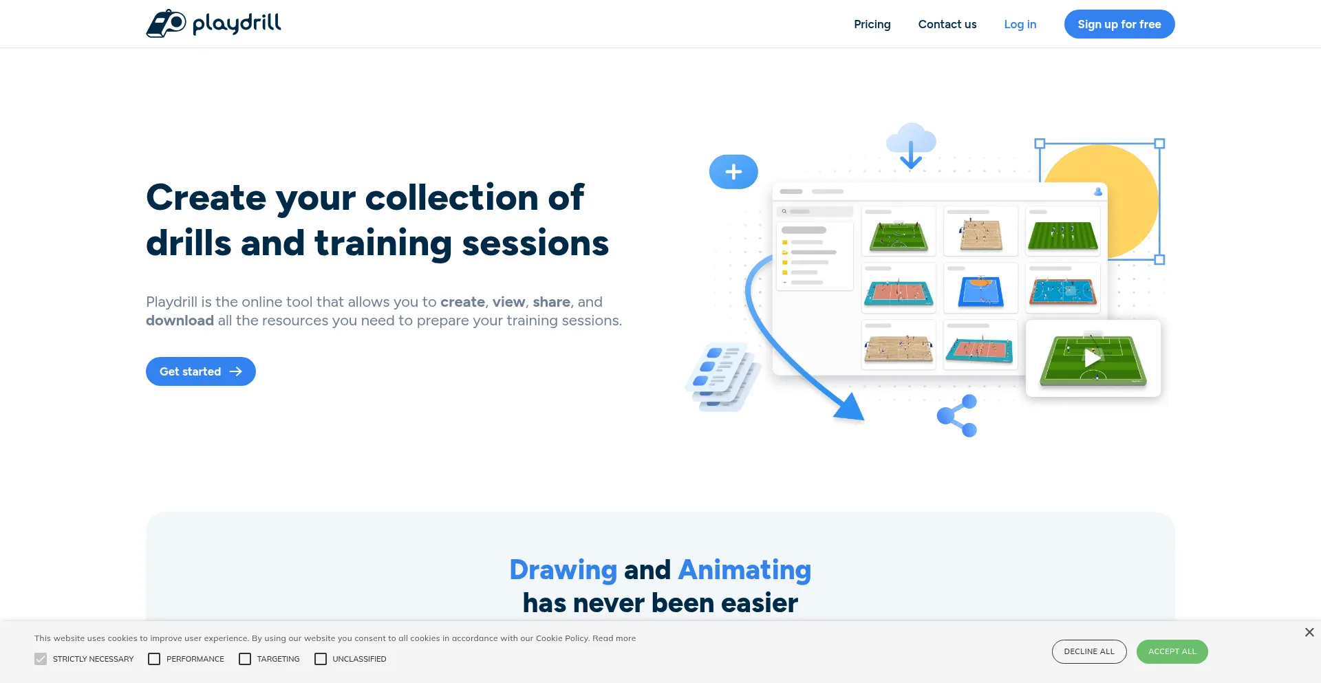 Playdrill is the online tool that allows you to create, view, share, and download everything you need to prepare your training sessions.