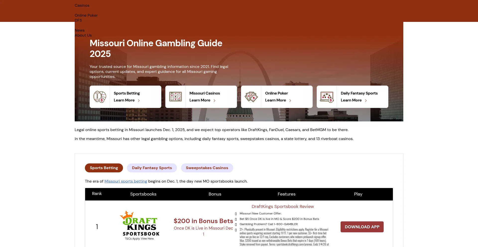 Online gambling Missouri laws explained. Sports betting coming Dec 2025. Discover casinos, DFS & how to bet safely. Start online gambling MO!