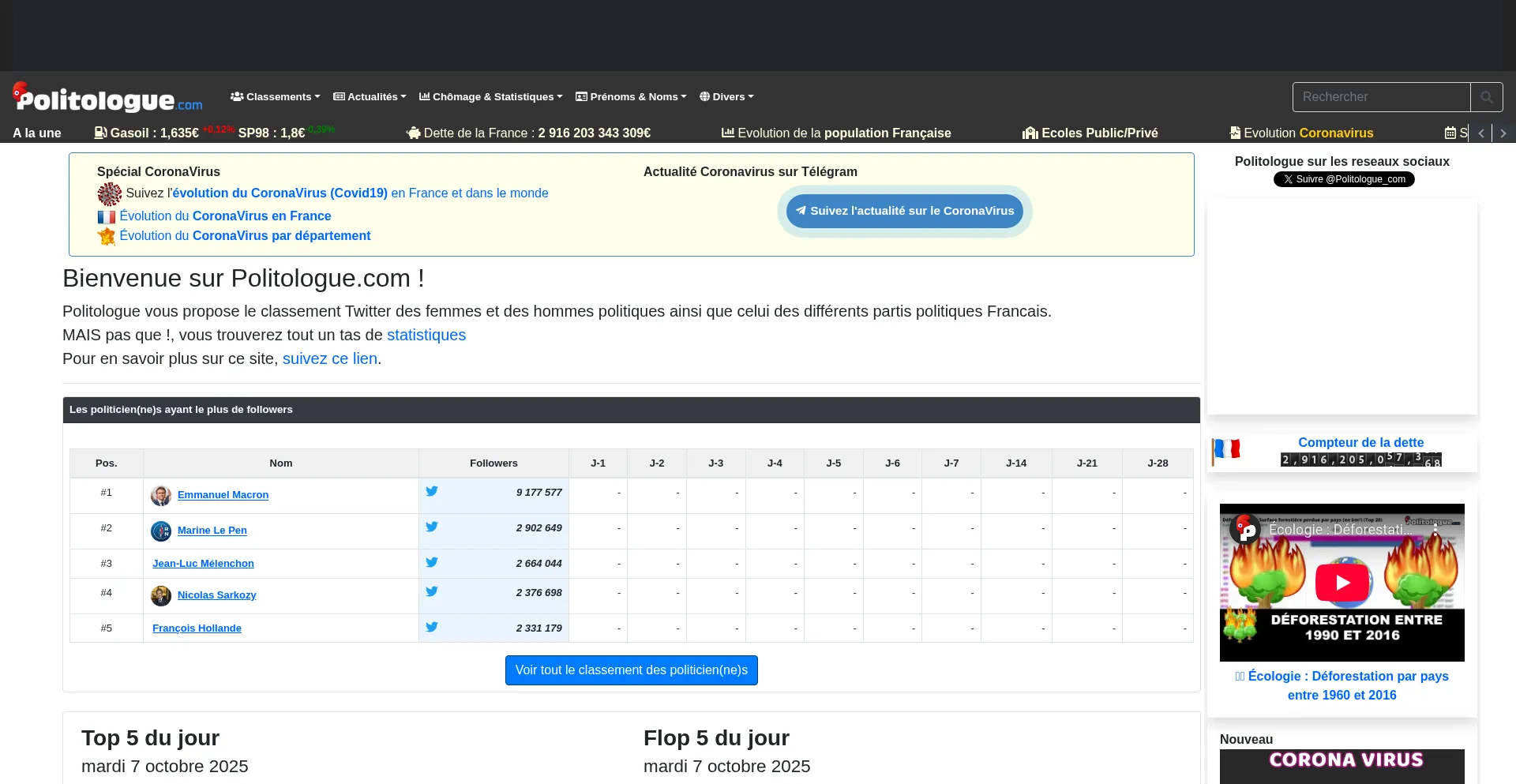 Classement politique sur Twitter. Statistiques, performances, évolution, tout en un clin d'oeil !