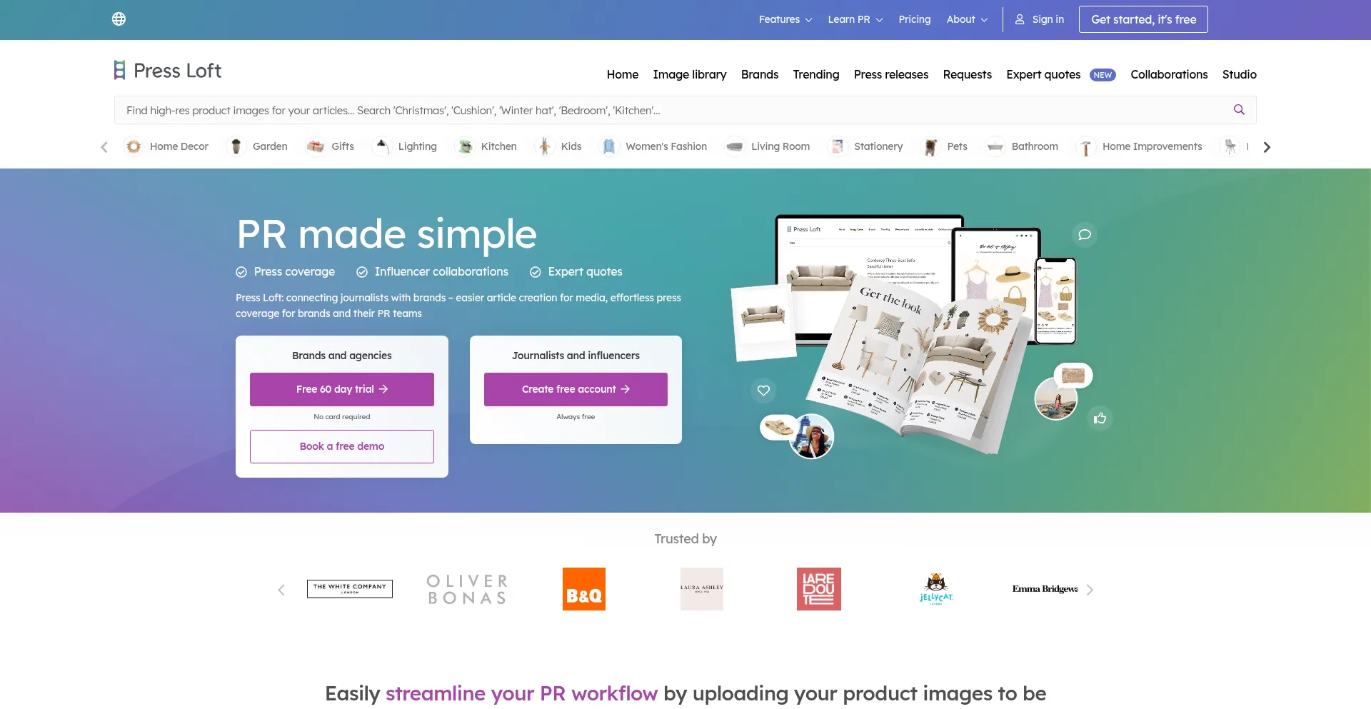 Use Press Loft to connect with journalists and secure quality press coverage for design and interior products quickly and affordably. Journalists can source imagery and connect ...