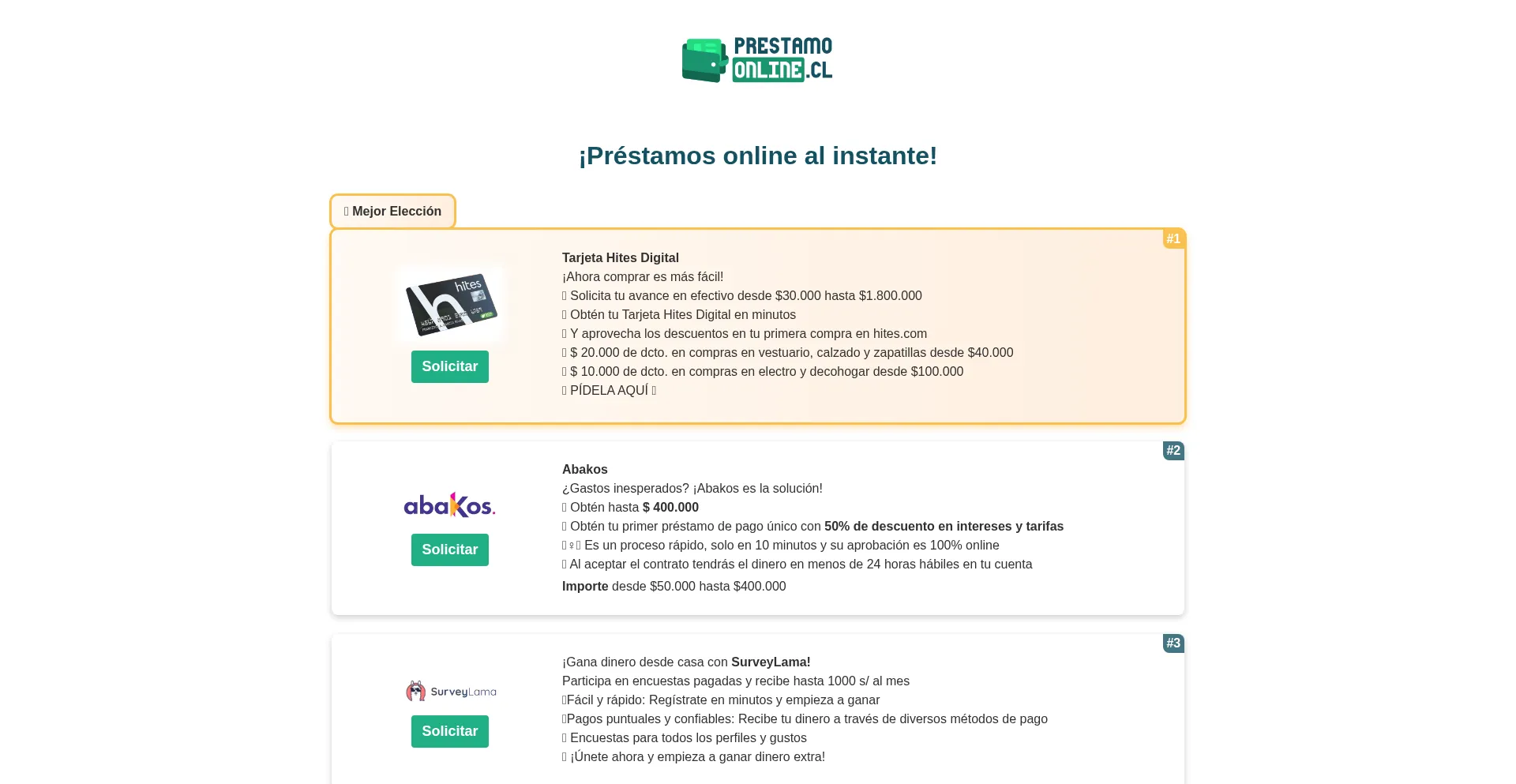 Encuentra los mejores préstamos y tarjetas de crédito en Chile en nuestro sitio web. Obtén financiamiento rápido y las mejores opciones para tus requerimientos financieros. ...