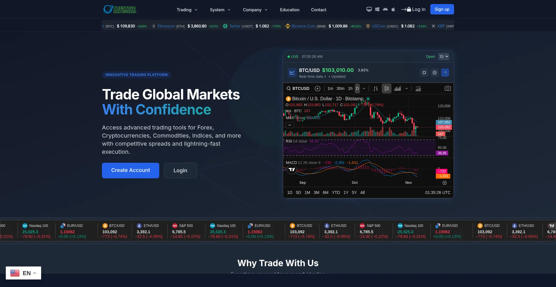 CFD Trading with Prestige Max Signals. Trading on Stocks, Gold, Oil, Indices with ultra-fast execution & spreads from 0.0 pips. News, articles and training materials for experie...