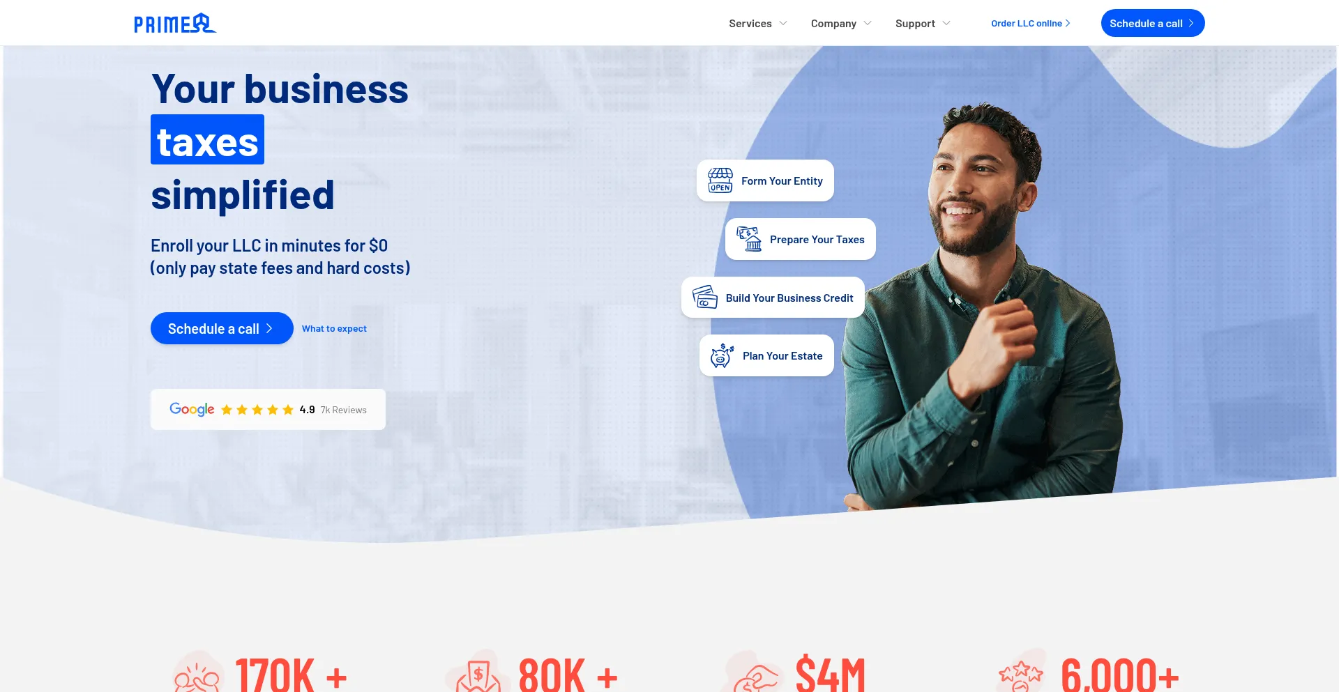 PRIME makes business formation, taxes, credit, and estate planning simple—personalized advice, expert support, and confidence from day one.