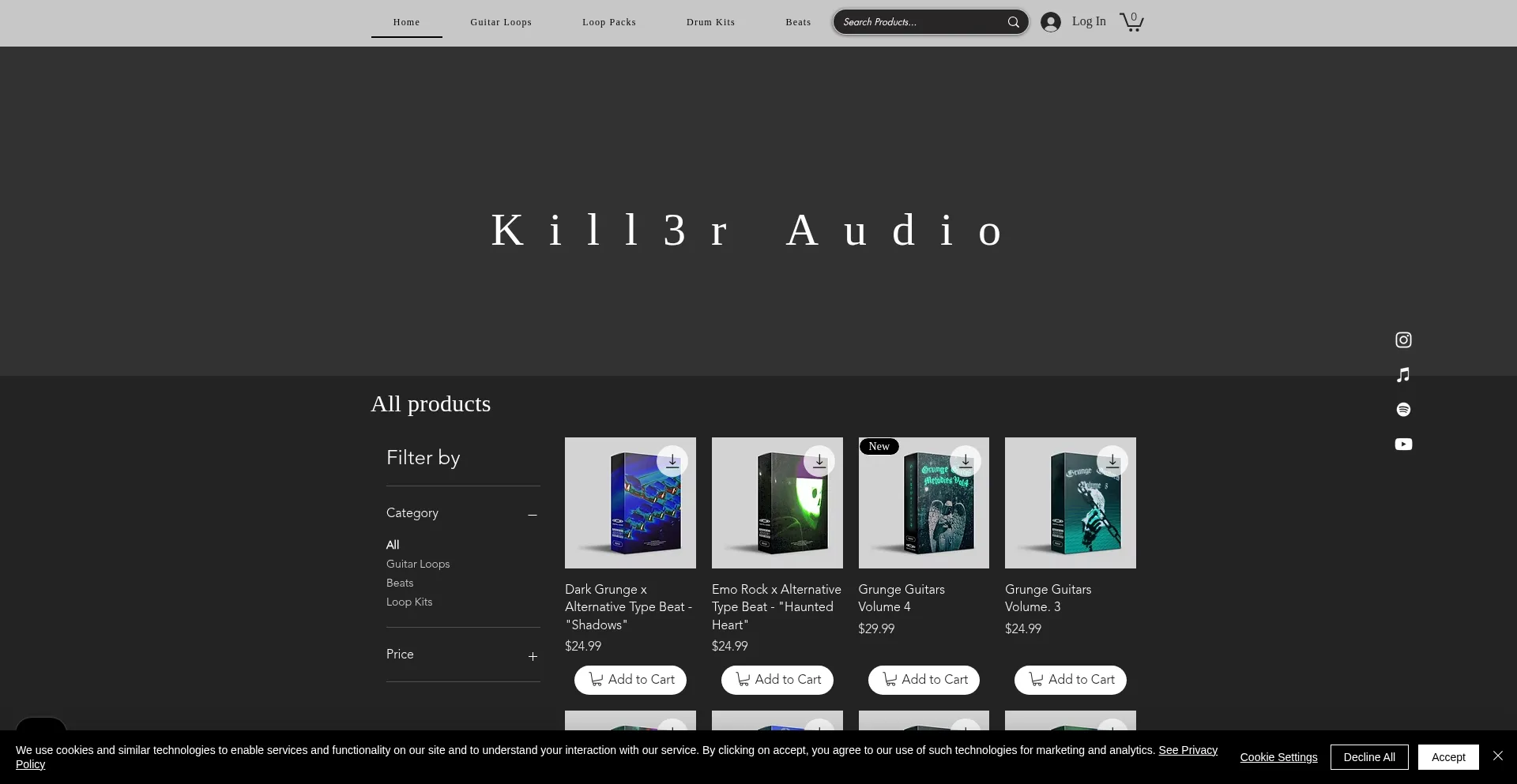 Welcome to Kill3r Audio , the home to new innovative sounds with high quality Guitars Samples and indescribable drums for a new sound to be created.