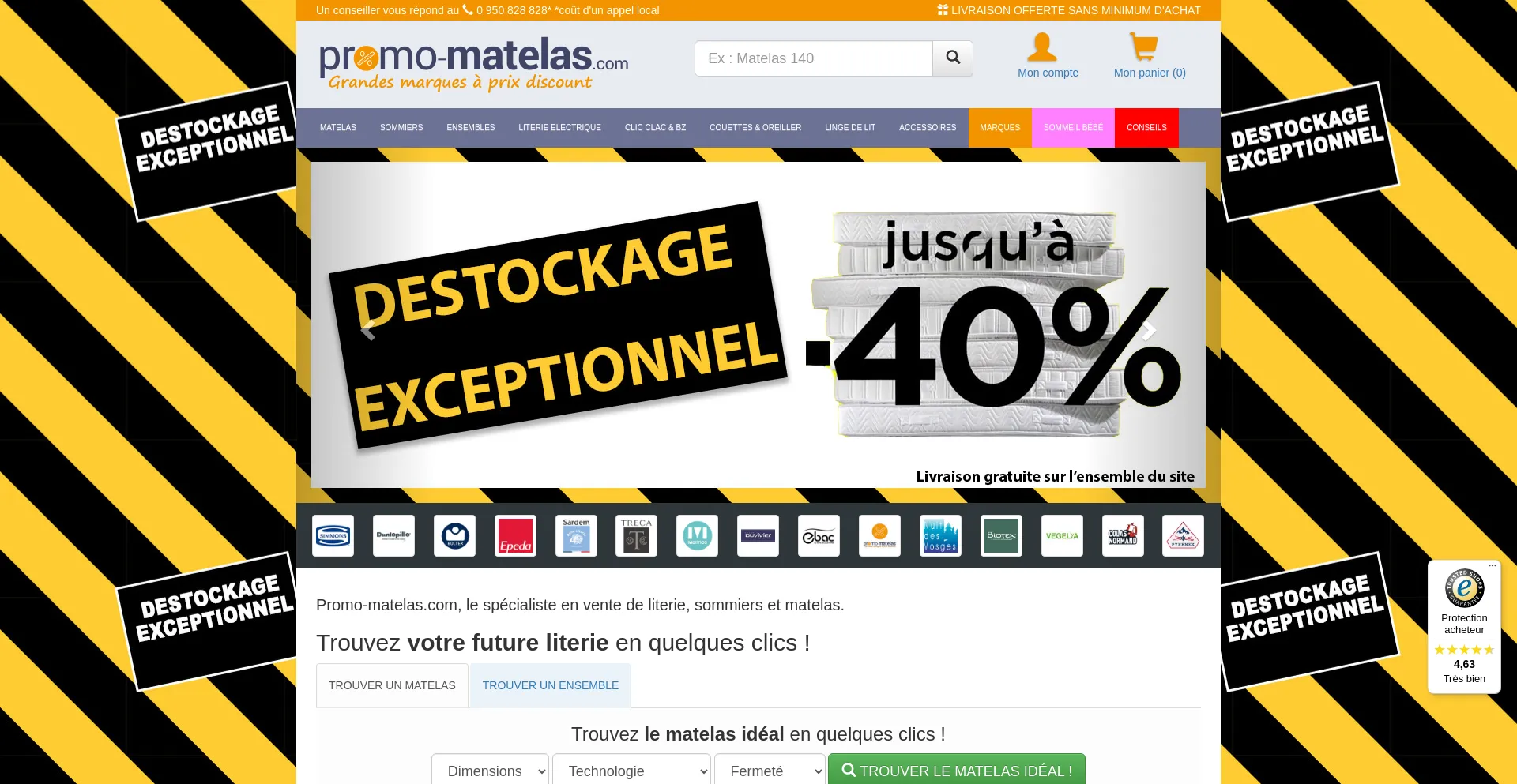Matelas, sommiers et articles de literie de grande marque à prix discount. Livraison offerte. Paiement CB trois fois sans frais.