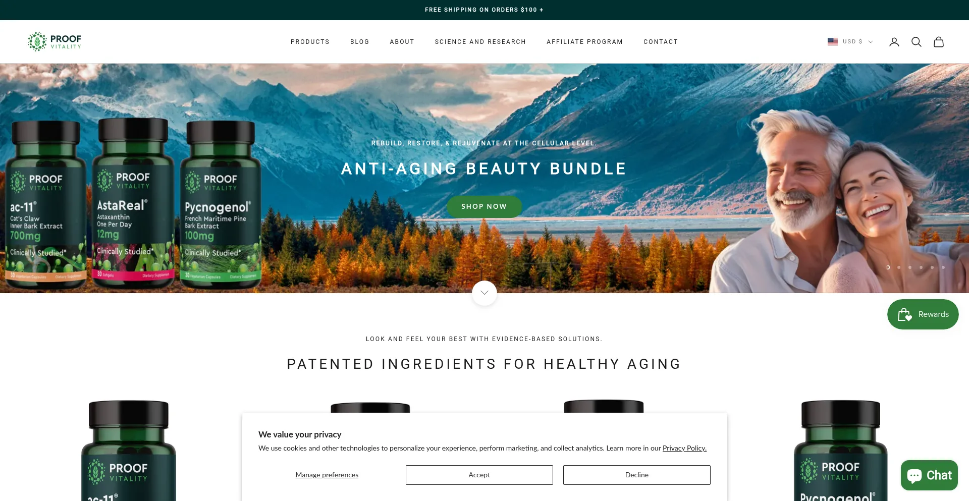 O site implementa mecanismos de consentimento de cookies em conformidade com regulamentações de privacidade como GDPR ou CCPA. Isso demonstra que proofvitality.com adere a padrões de proteção de dados e fornece aos usuários controle sobre práticas de coleta de dados pessoais.