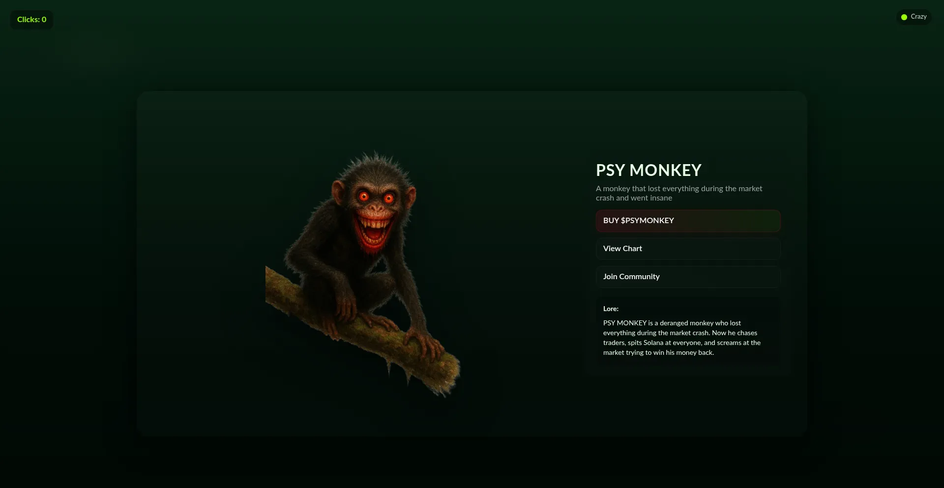 PSY MONKEY is a deranged monkey who lost everything during the market crash.