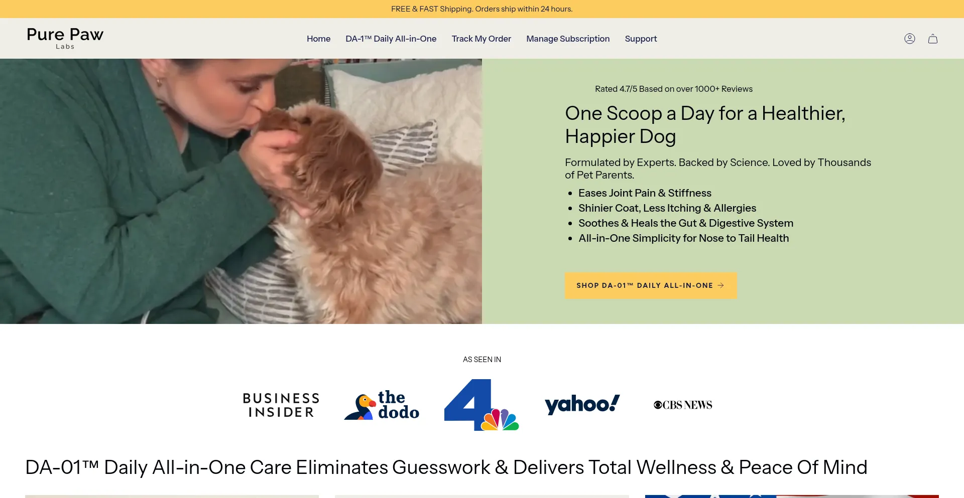 Pure Paw Labs creates science-backed, human-grade pet supplements designed to support your dog’s joints, gut, skin, immunity, and stress levels. DA-01™ Daily All-in-One is a...