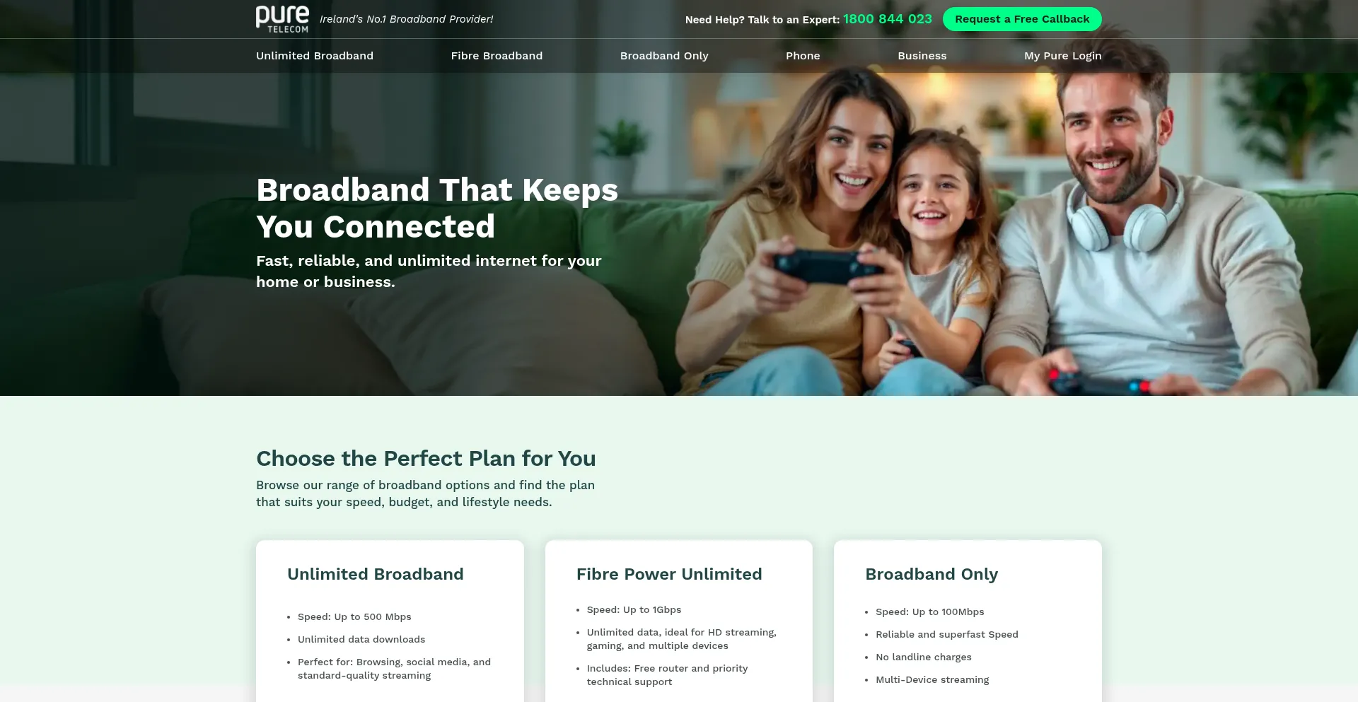 Ireland's No.1 Broadband Provider & Phone - Call Now 1800 844 023 | Pure Telecom