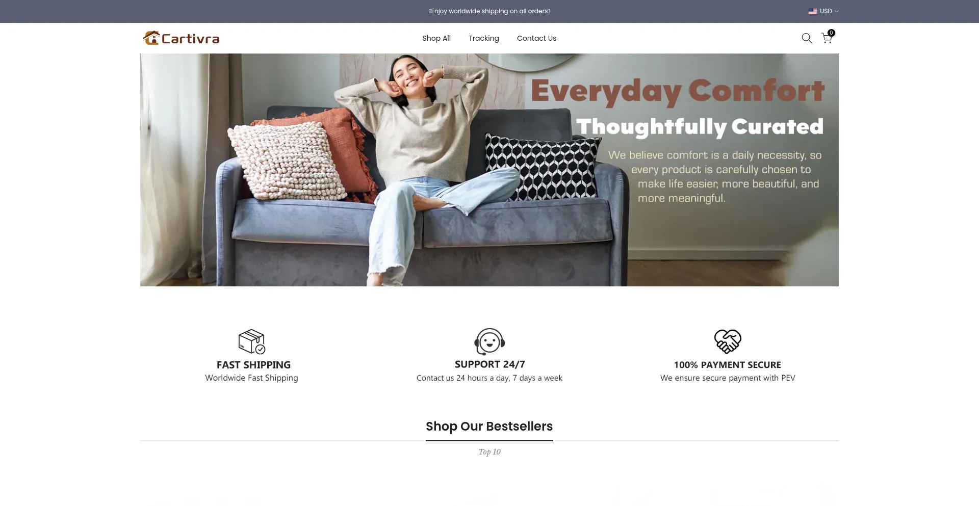 Shopping, Reliable Payment Method, Deals, Uses Free eCommerce Engine, Shopify Platform, Facebook Integration, Young Domain