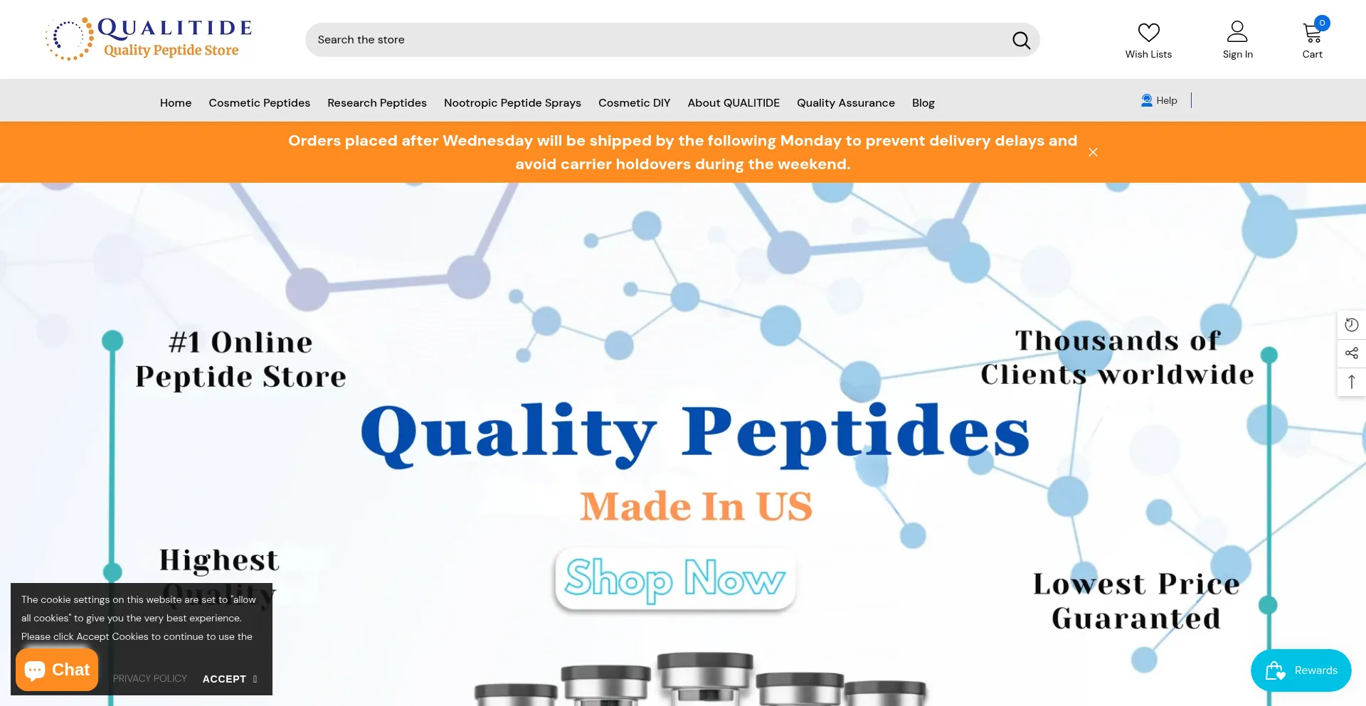Qualitide Online Store for premium cosmetic and research peptides