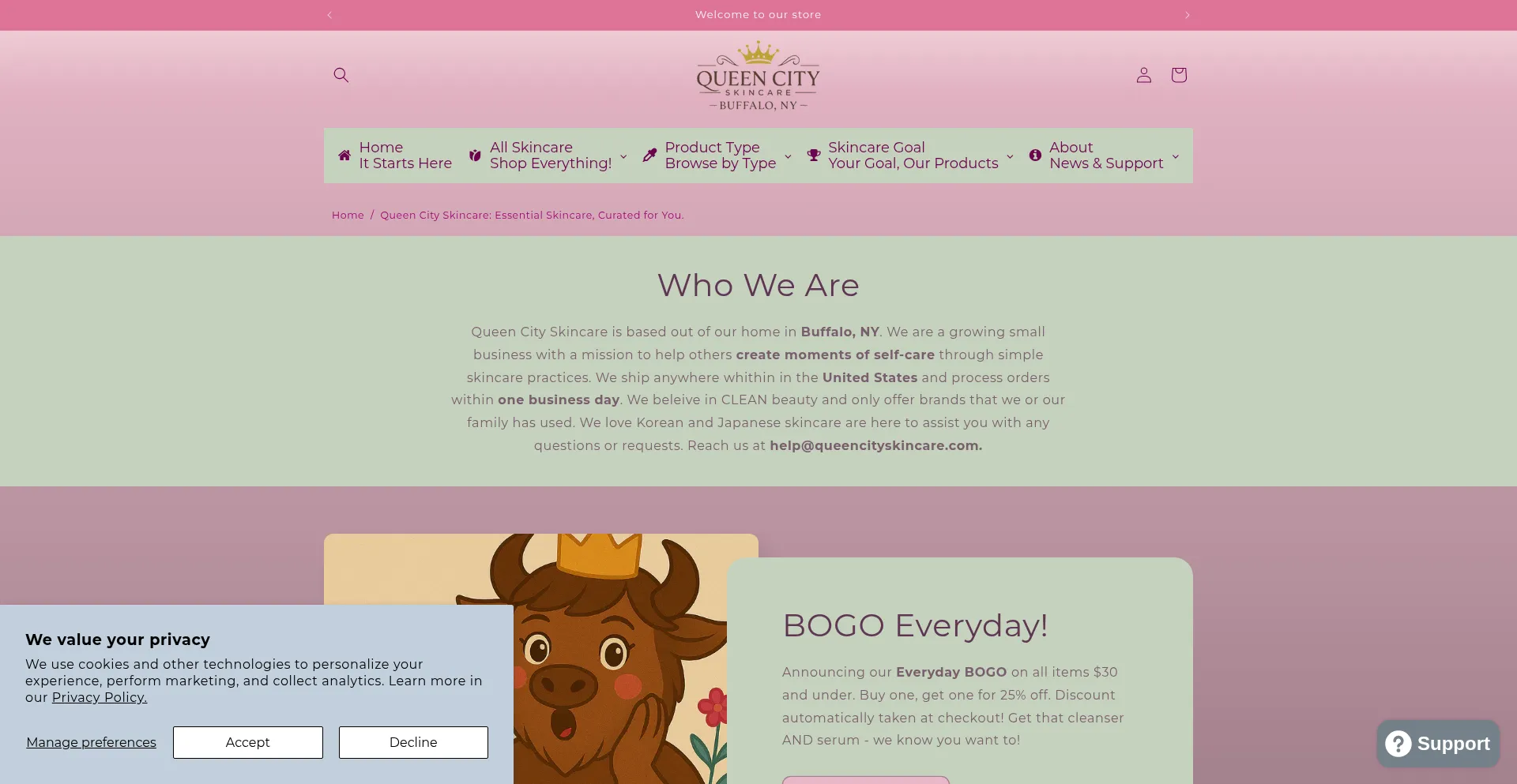 Queen City Skincare offers curated, affordable skincare including K-beauty favorites, spa night kits, and self-care essentials. Based in Buffalo, NY.
