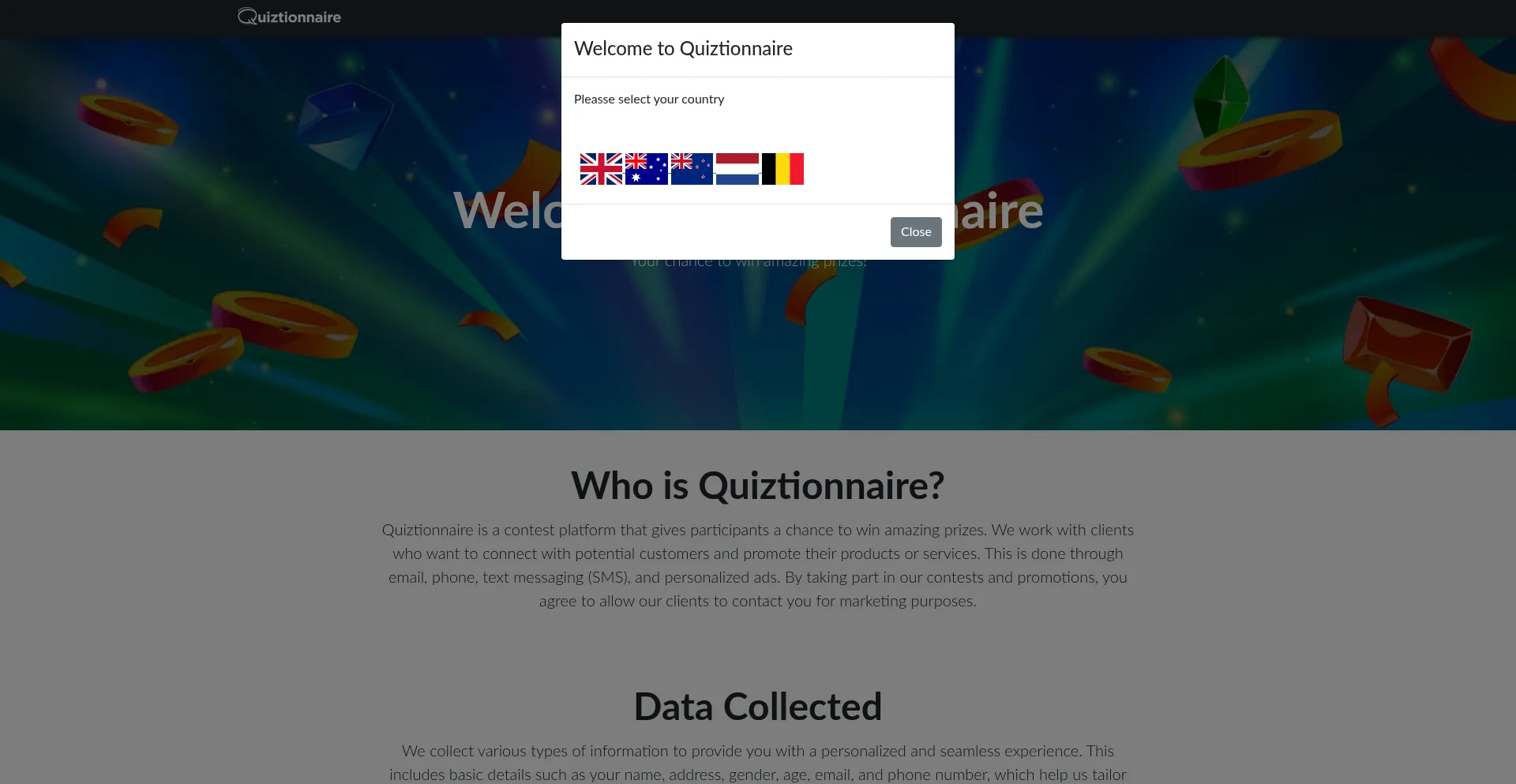 Quiztionnaire.co Site fraudulento