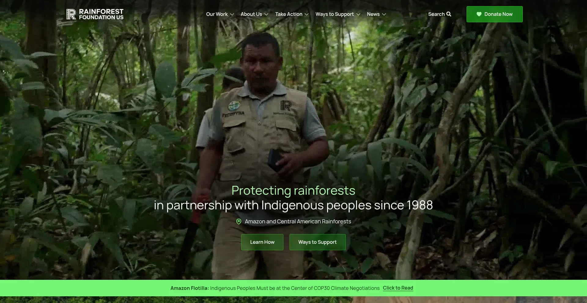 Rainforest Foundation US focuses on protecting rainforests in partnership with Indigenous peoples since 1988