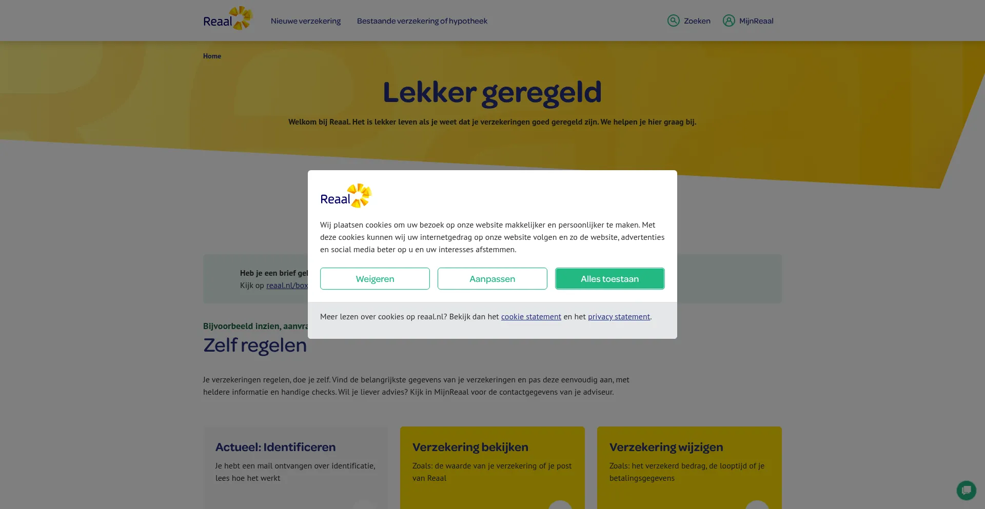 O site implementa mecanismos de consentimento de cookies em conformidade com regulamentações de privacidade como GDPR ou CCPA. Isso demonstra que reaal.nl adere a padrões de proteção de dados e fornece aos usuários controle sobre práticas de coleta de dados pessoais.