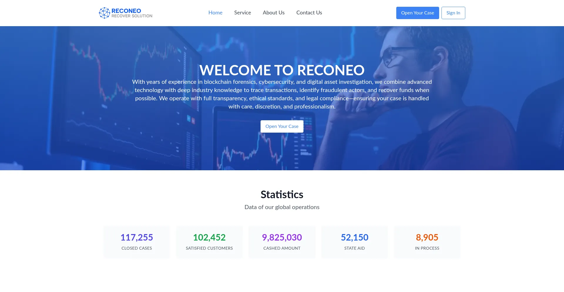 O site reconeo.com anuncia serviços de recuperação de fundos para ativos perdidos ou roubados. Enquanto alguns operam em estruturas de honorários de contingência, outros podem exigir pagamentos antecipados, o que pode indicar operações fraudulentas. Verifique credenciais e conformidade regulatória antes de contratar tais serviços.