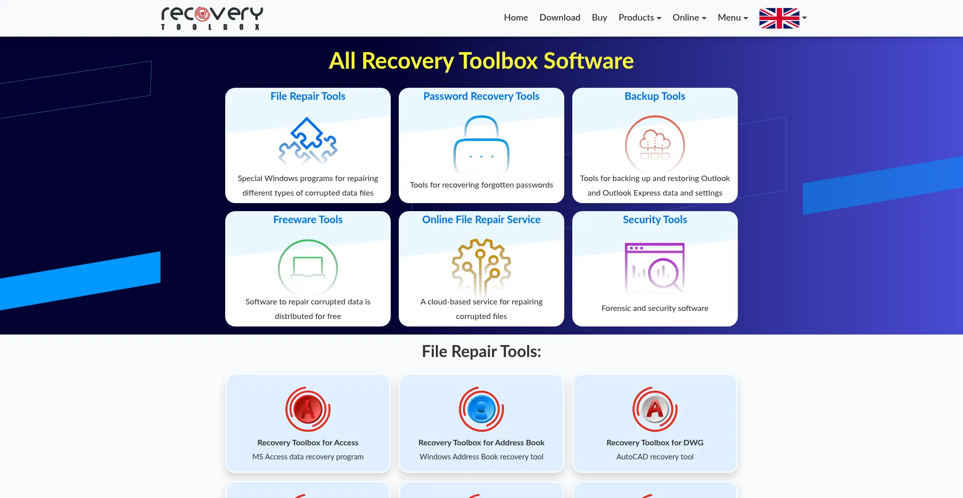 Recovery tools for corrupted ost, pst, wab, zip, rar, xls, xlsx, doc, docx, accdb, ppt, pptx, mpp, onenote, flash, cd, dbf, pdf, sql, mysql, registry, psd, ai, edb, cad, cdr, ns...
