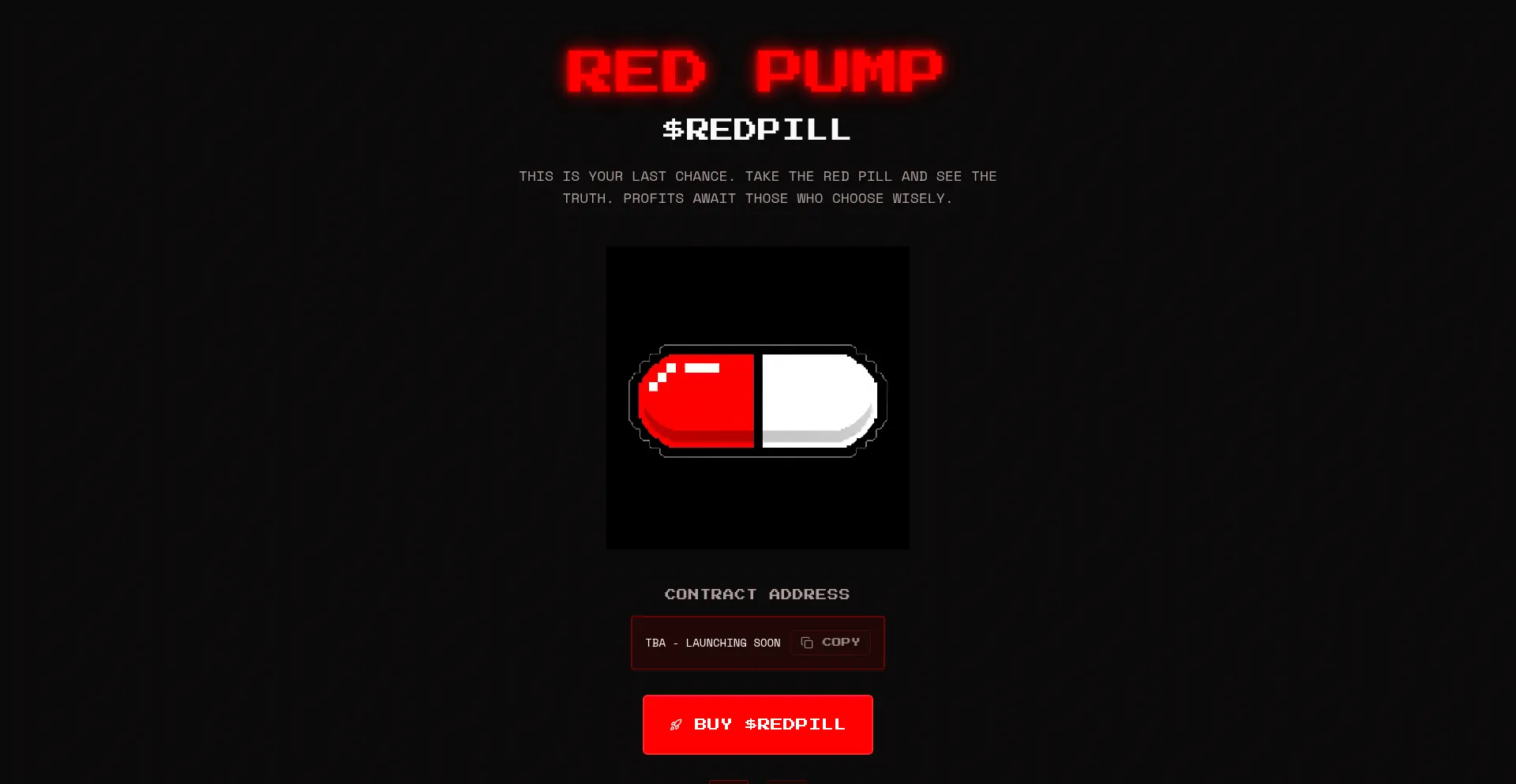 Take the Red Pill and wake up to the last big opportunity on Solana meme coins. 100% unlocked at TGE on Pump.fun. Choose wisely.