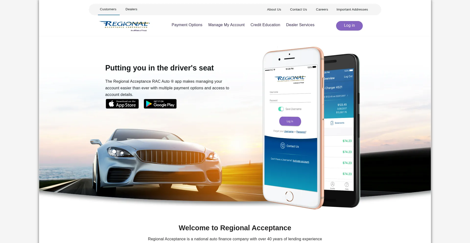 The Regional Acceptance RAC Auto ® app makes managing your account easier than ever with multiple payment options and access to account details.