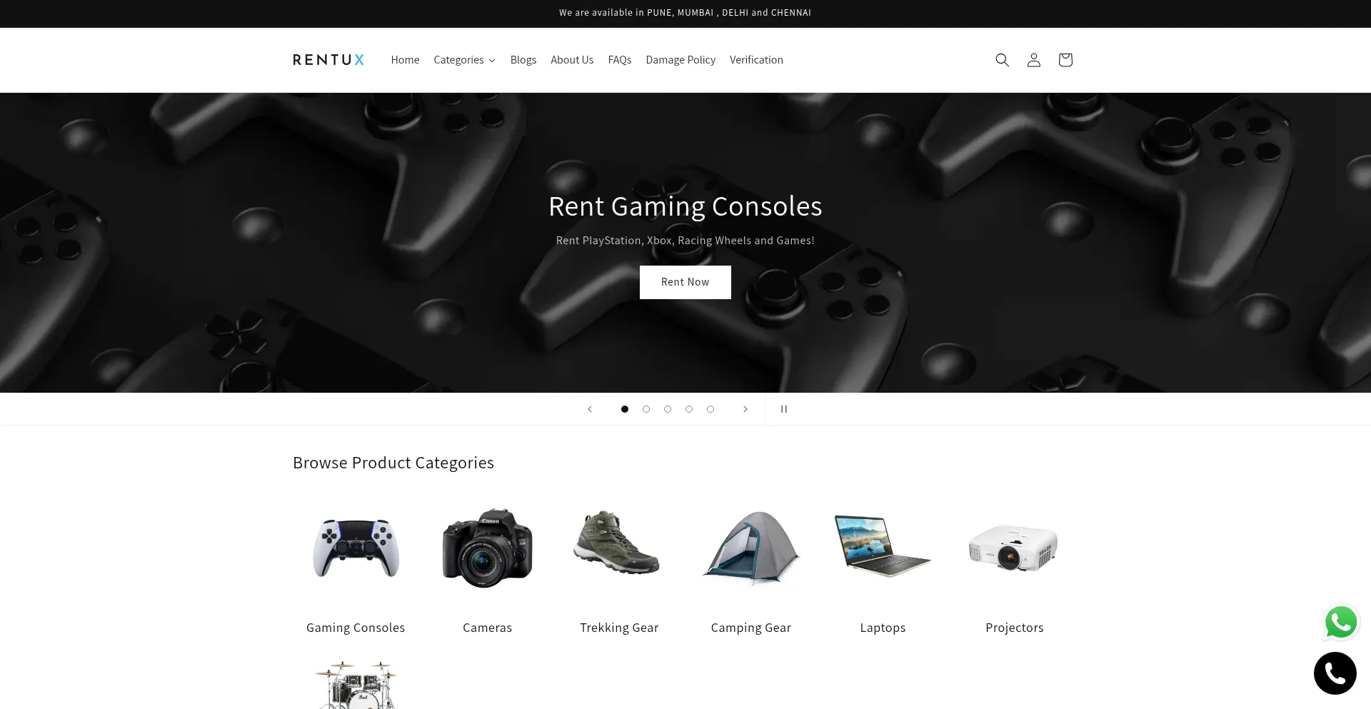 Rentux provides gaming consoles, camera equipment, laptops, camping tents, trekking gear and more on rent at affordable prices. Get it home delivered or pickup from partner stores.