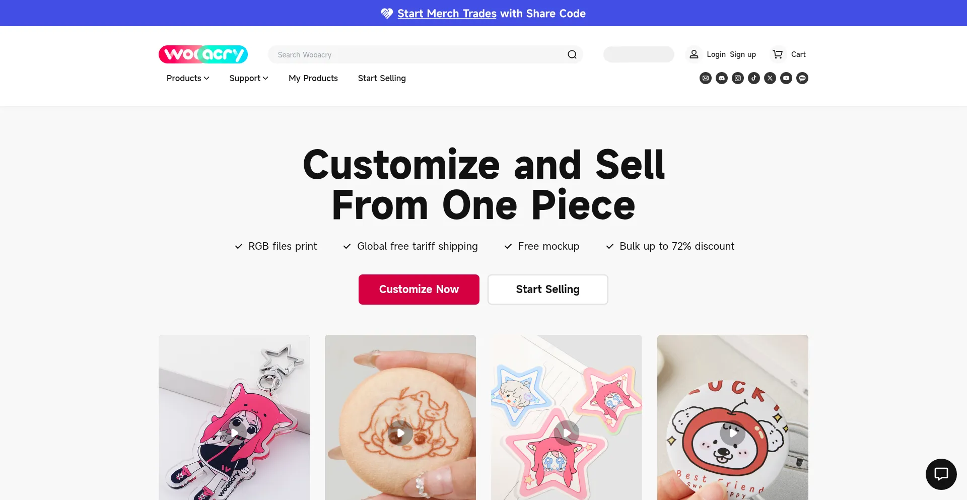 Wooacry is a custom on demand platform that focuses on ‘order from one piece’, supports live previewing and online ordering.Customized acrylic keychains, plush badges, and m...