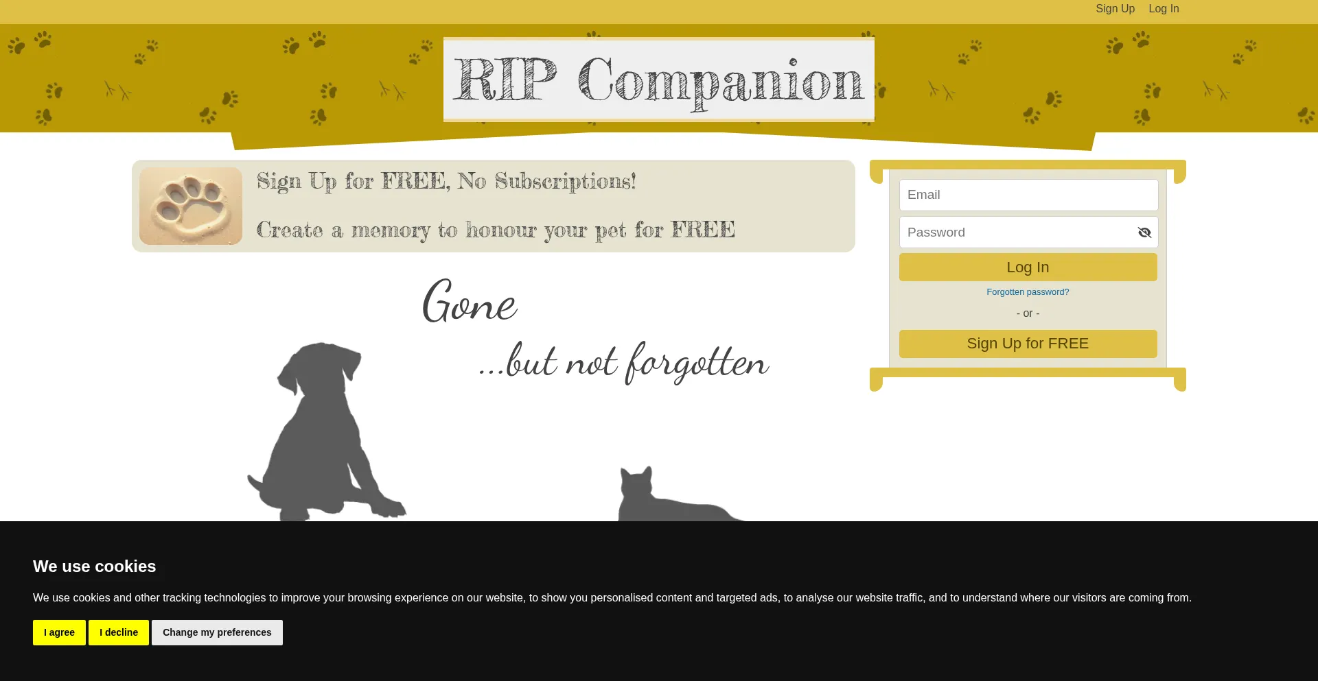 RIP Companion is a heartfelt platform where pet owners can honour and celebrate the cherished memories of their beloved pets who have passed away.