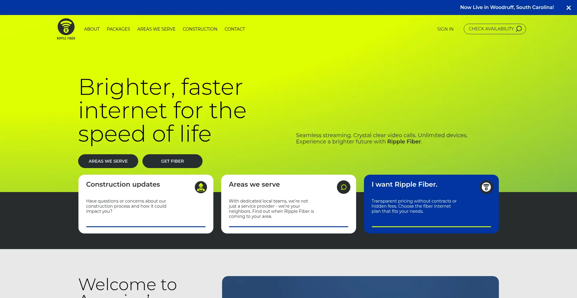 Ripple Fiber is America's fastest fiber internet company. Clear video calls. Fast download times. Less buffering. Experience the Ripple Fiber effect.