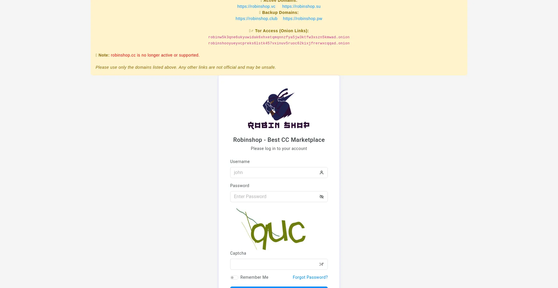 RobinShop is the most trusted and verified CVV marketplace. Our quality and refund policy make us stand out. If one domain is down, use our active or backup domains or Tor link....