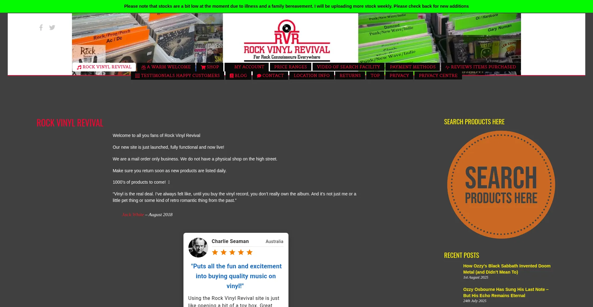Welcome to all you fans of Rock Vinyl Revival Our new site is just launched, fully functional and now live! We are a mail order only business. We do not hav ...