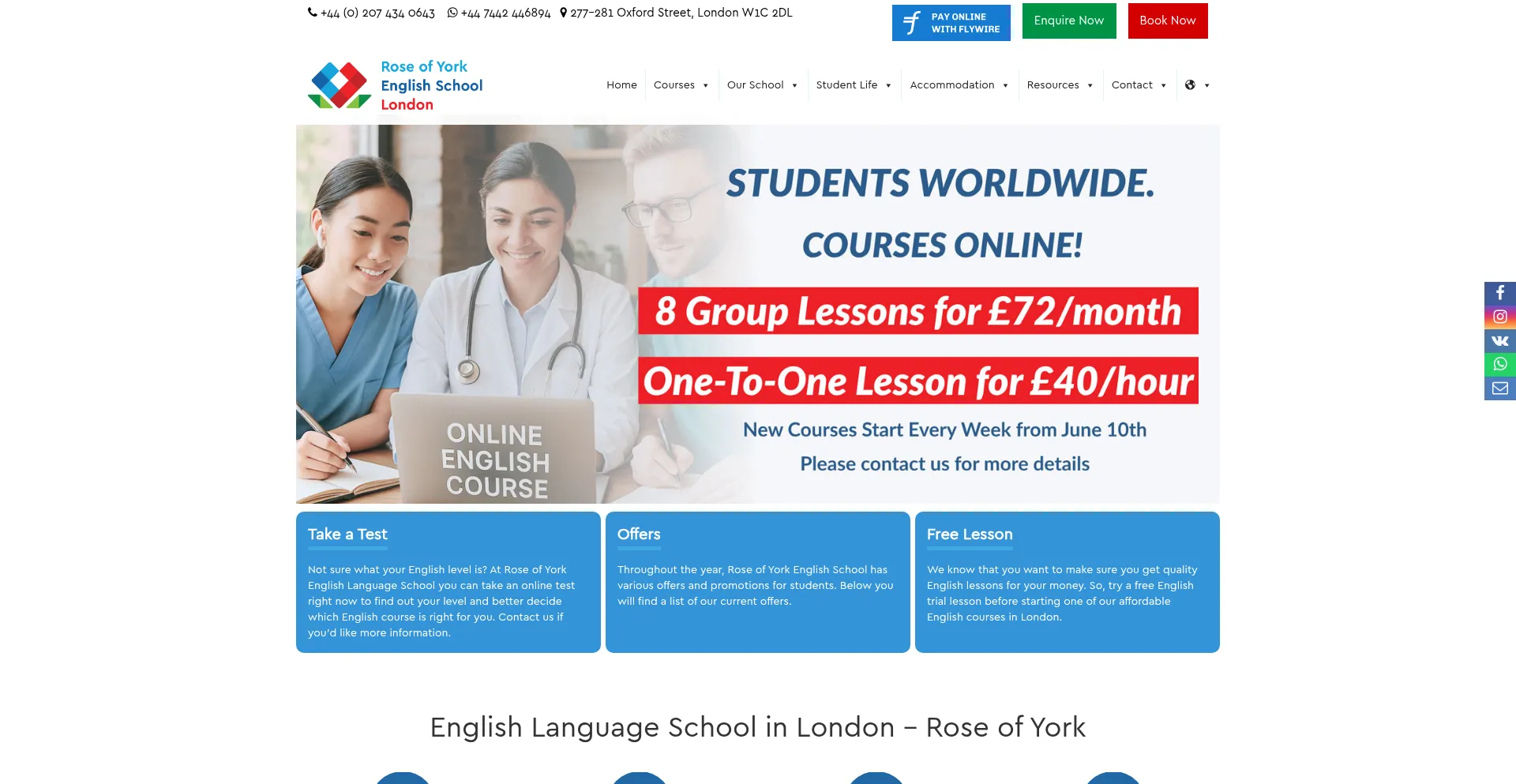 English language school in London | English courses - Rose of York