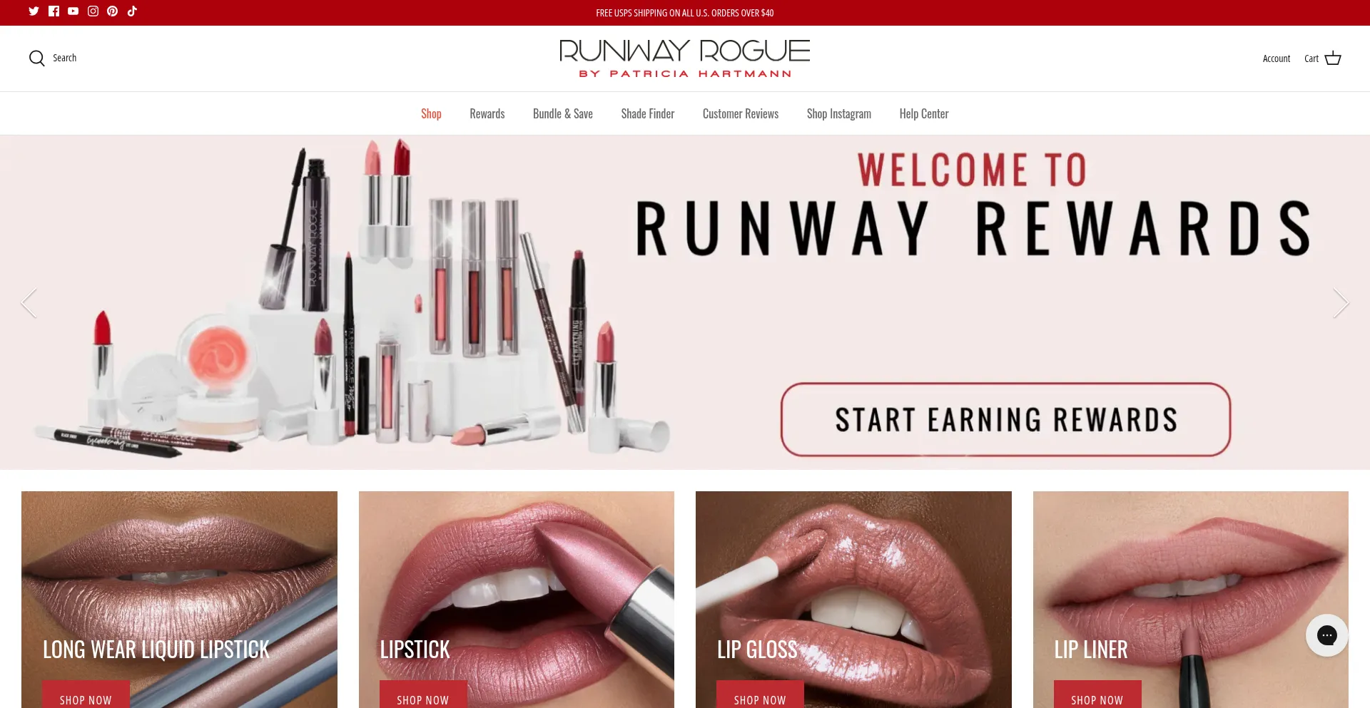 A presença de links de redes sociais no site indica que runwayroguebeauty.com mantém contas oficiais em redes sociais, o que é um sinal positivo de credibilidade e engajamento.