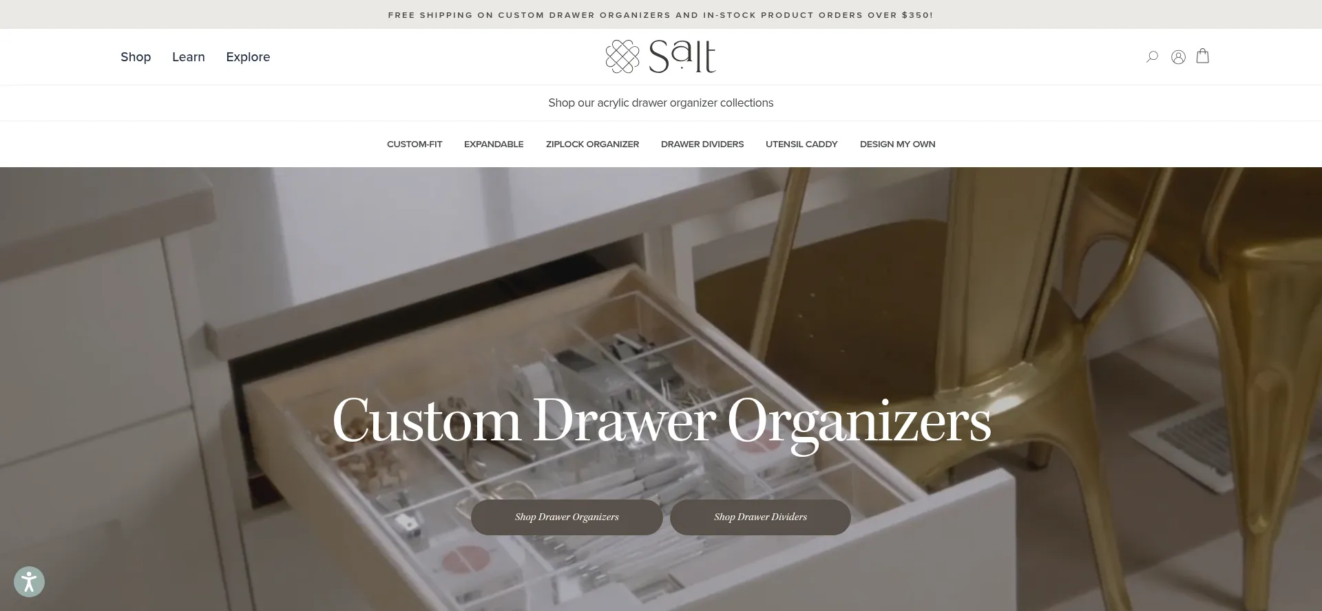 Salt by Sabrina’s custom drawer organizers and home storage solutions offer a premium upgrade compared to traditional, mainstream storage solutions. Learn more!