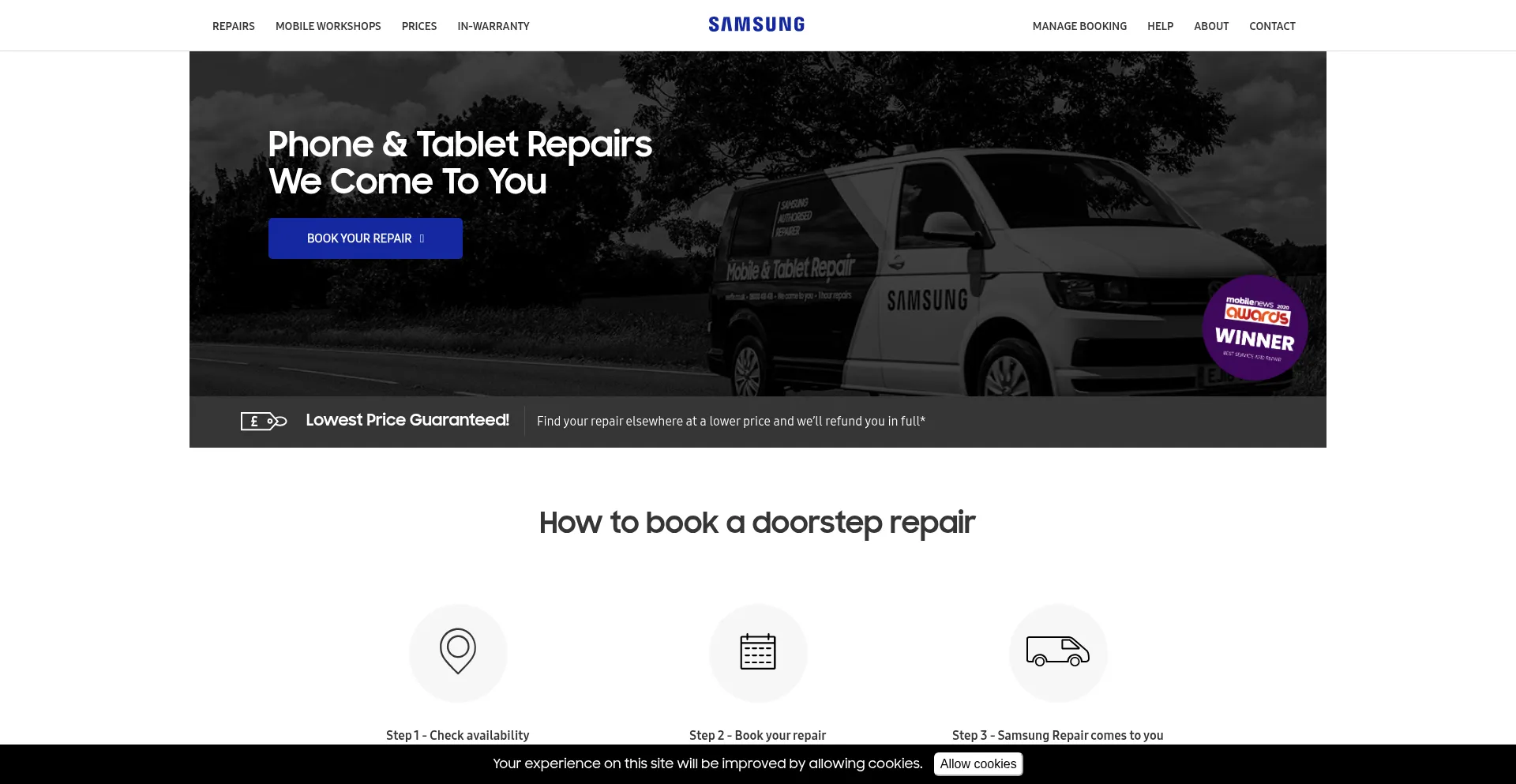 Samsung Repair makes it easy to get your Samsung phone or tablet repaired. Our fleet of mobile workshops comes to your location to repair your Samsung device. Book online today.