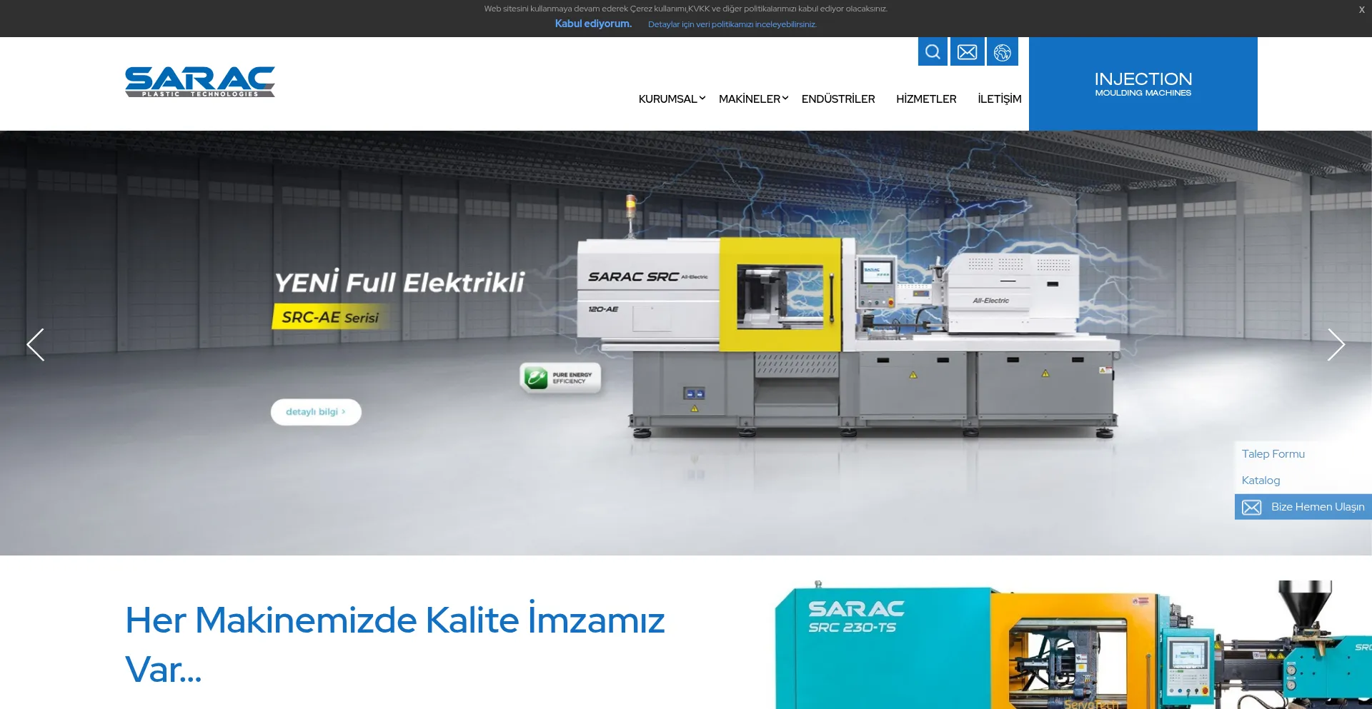 SARAÇ, yüksek kaliteli Avrupa marka komponentler kullanarak, Avrupa standartlarına göre üretilmiş, yeni nesil ServoTech enjeksiyon makineleri üretmektedir.